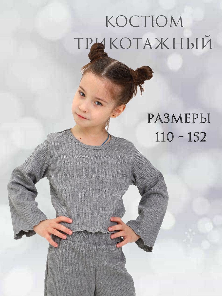 СохранитьКомплект одежды КитаМиш домашний трикотажный для девочки, размер 30-110, серый меланж/темно-серый интересное: