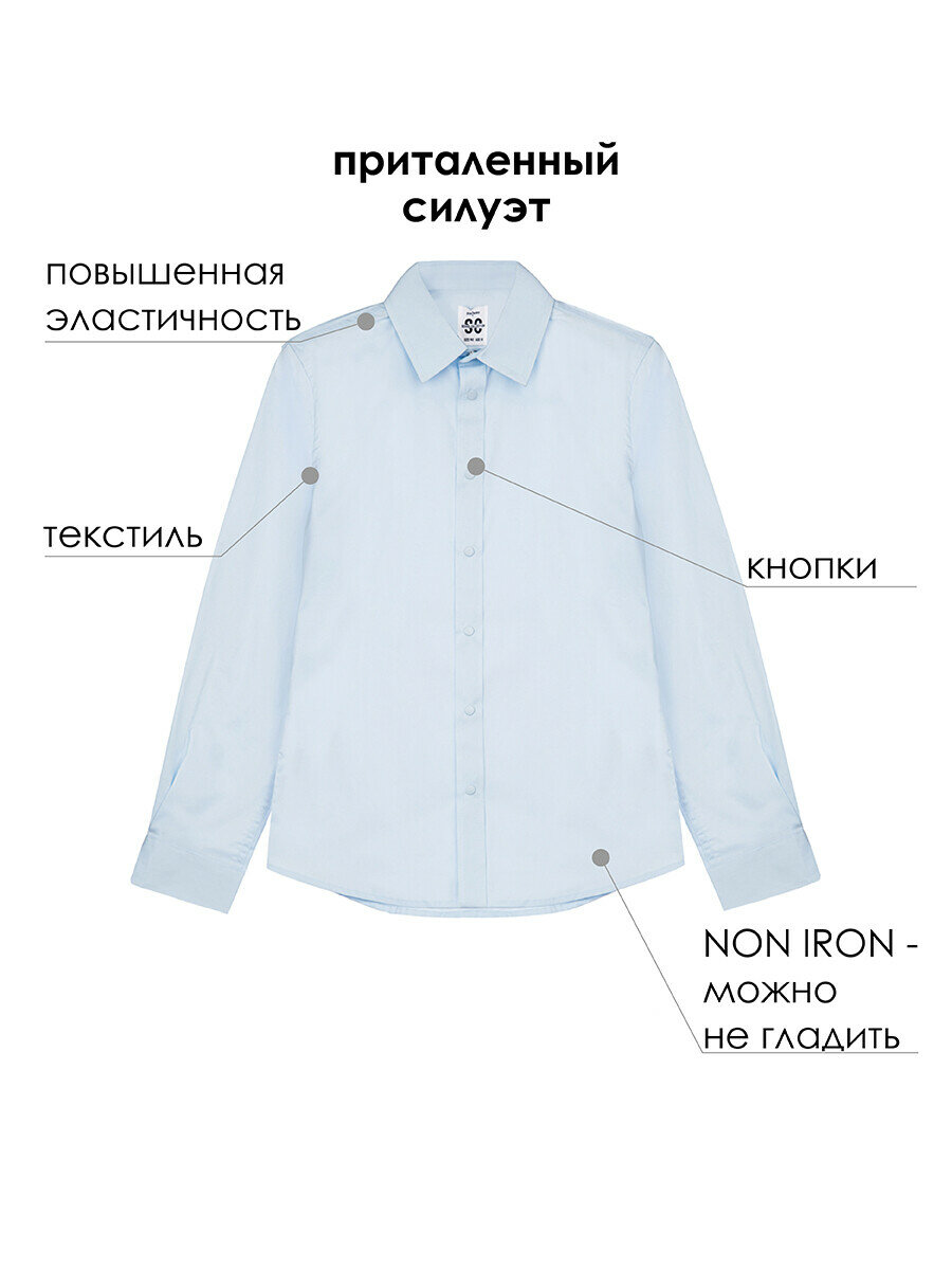 Школьная рубашка playToday, размер 152, голубой