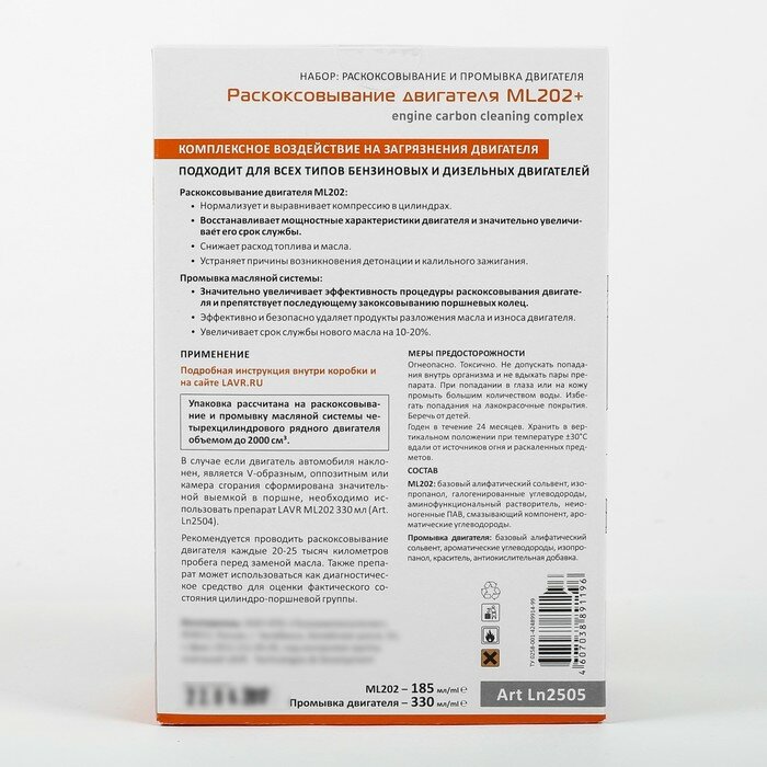 Ln2505_набор! Для Раскоксов. Двигателя, Ml-202 + Промывка, Для Двиг До 2-Х Литров, 185мл/ 330мл LAVR арт. LN2505