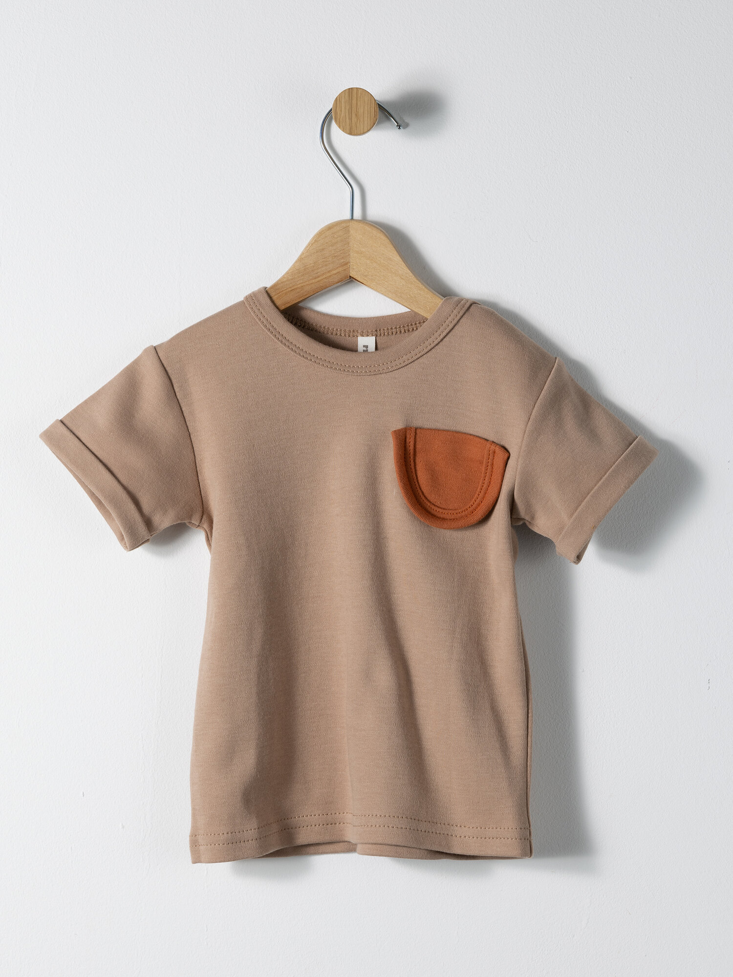 Футболка рубибуби новая коллекция, с кармашком, размер 98-104, какао