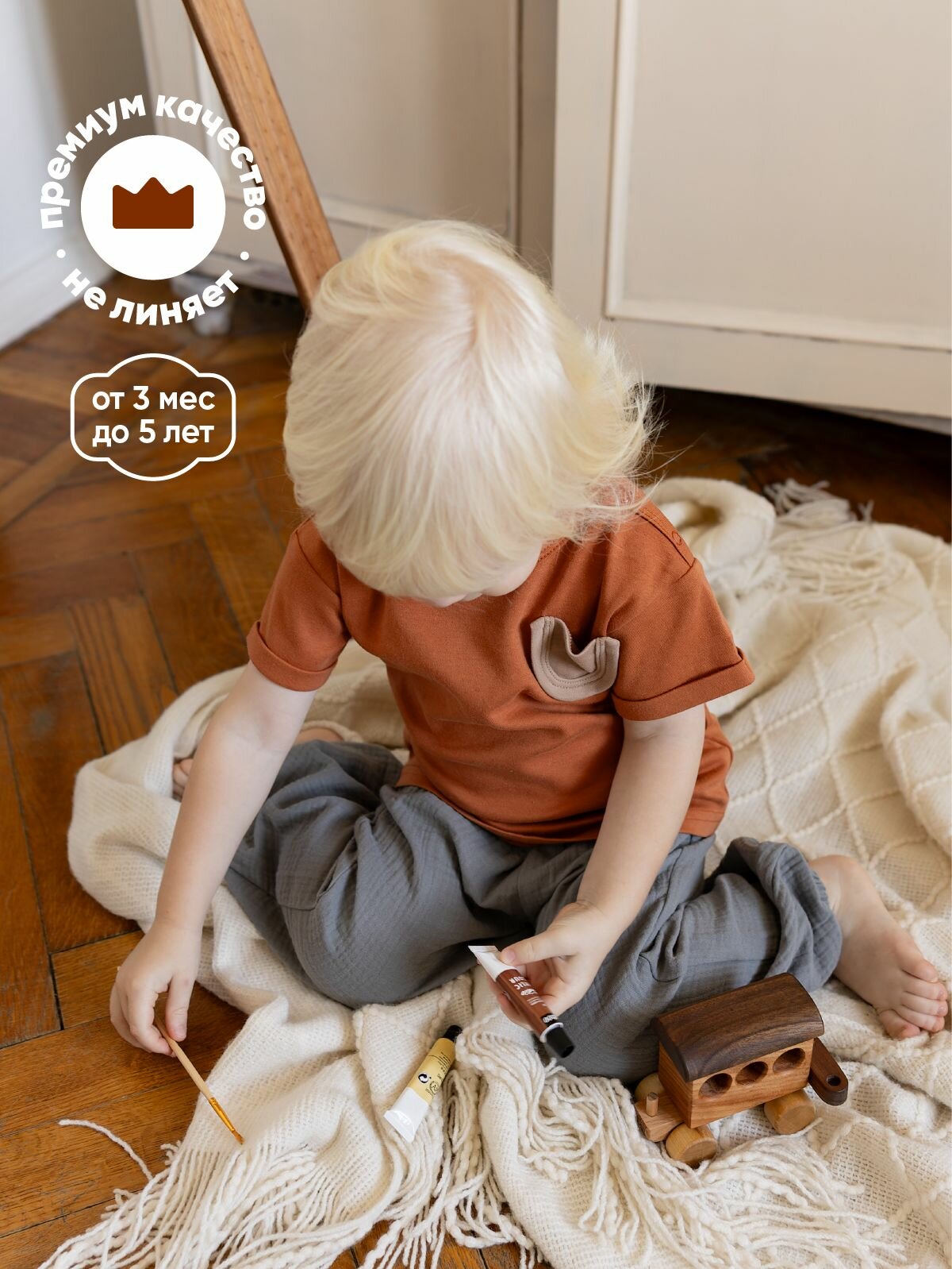 Футболка рубибуби новая коллекция, с кармашком, размер 92-98, какао