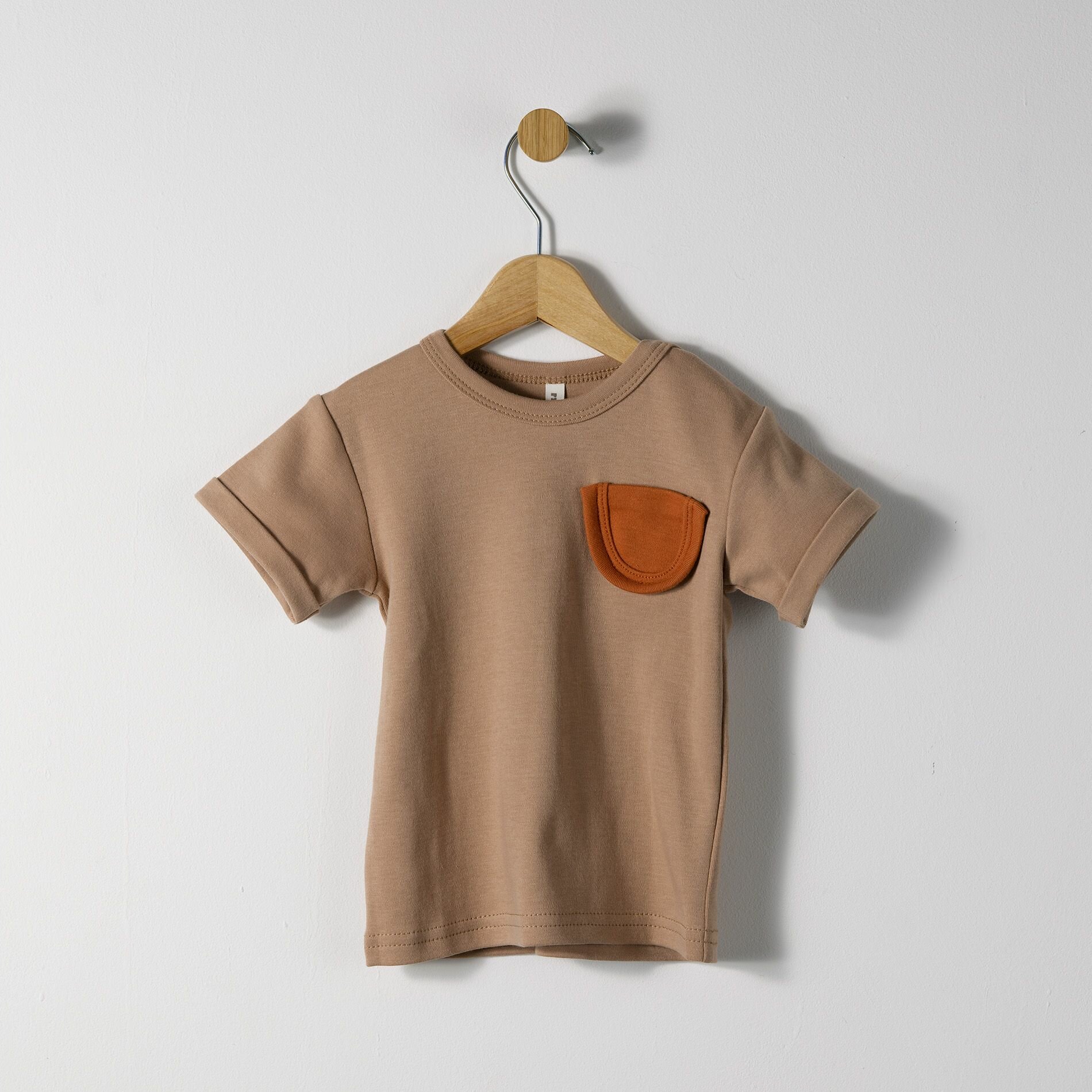 Футболка рубибуби новая коллекция, с кармашком, размер 62-68, какао