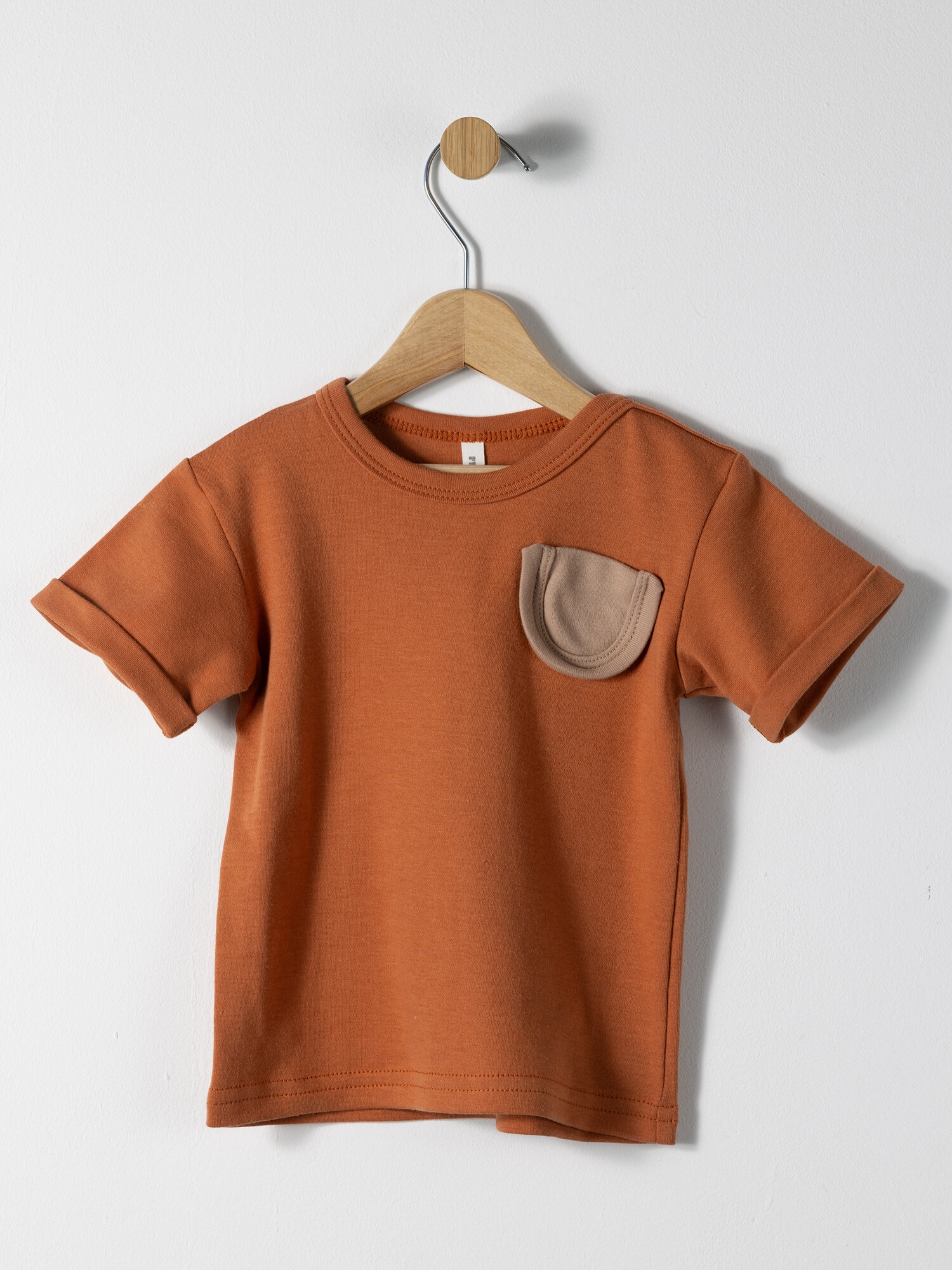 Купить Футболка рубибуби новая коллекция, с кармашком, размер 92-98, охра