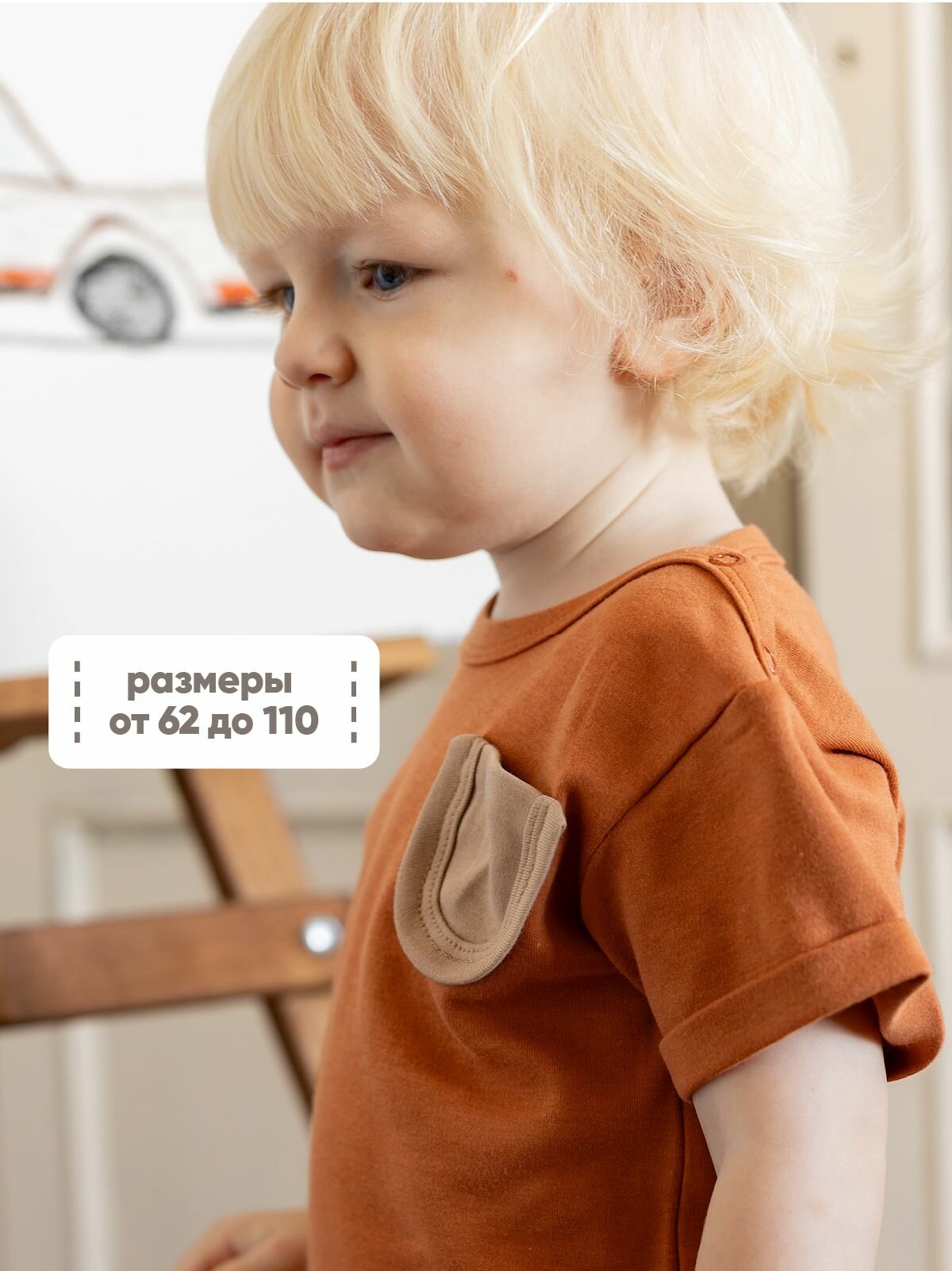 Футболка рубибуби новая коллекция, с кармашком, размер 80-86, какао