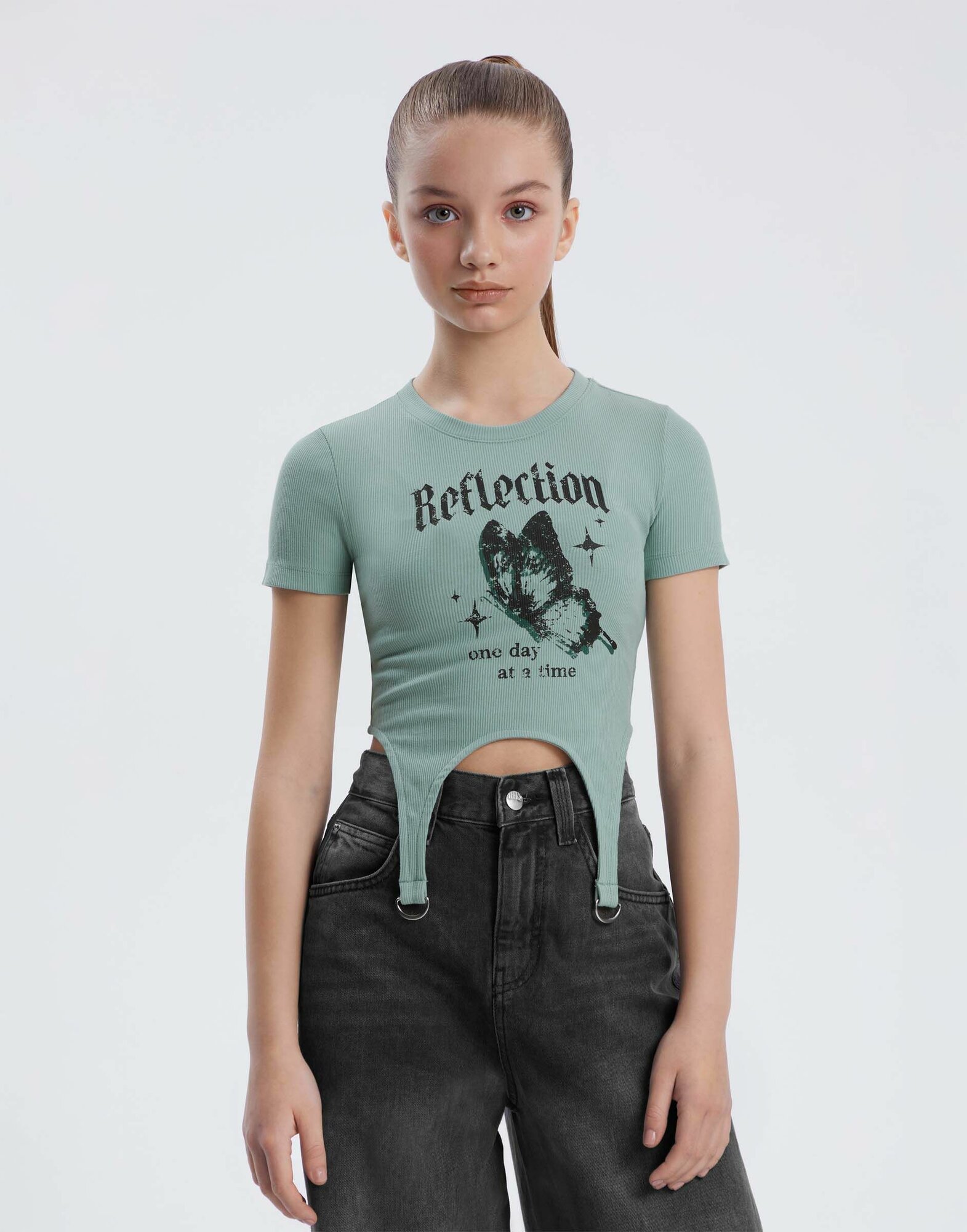 Топ Gloria Jeans, размер 6-8л/122-128, хаки интересное:
