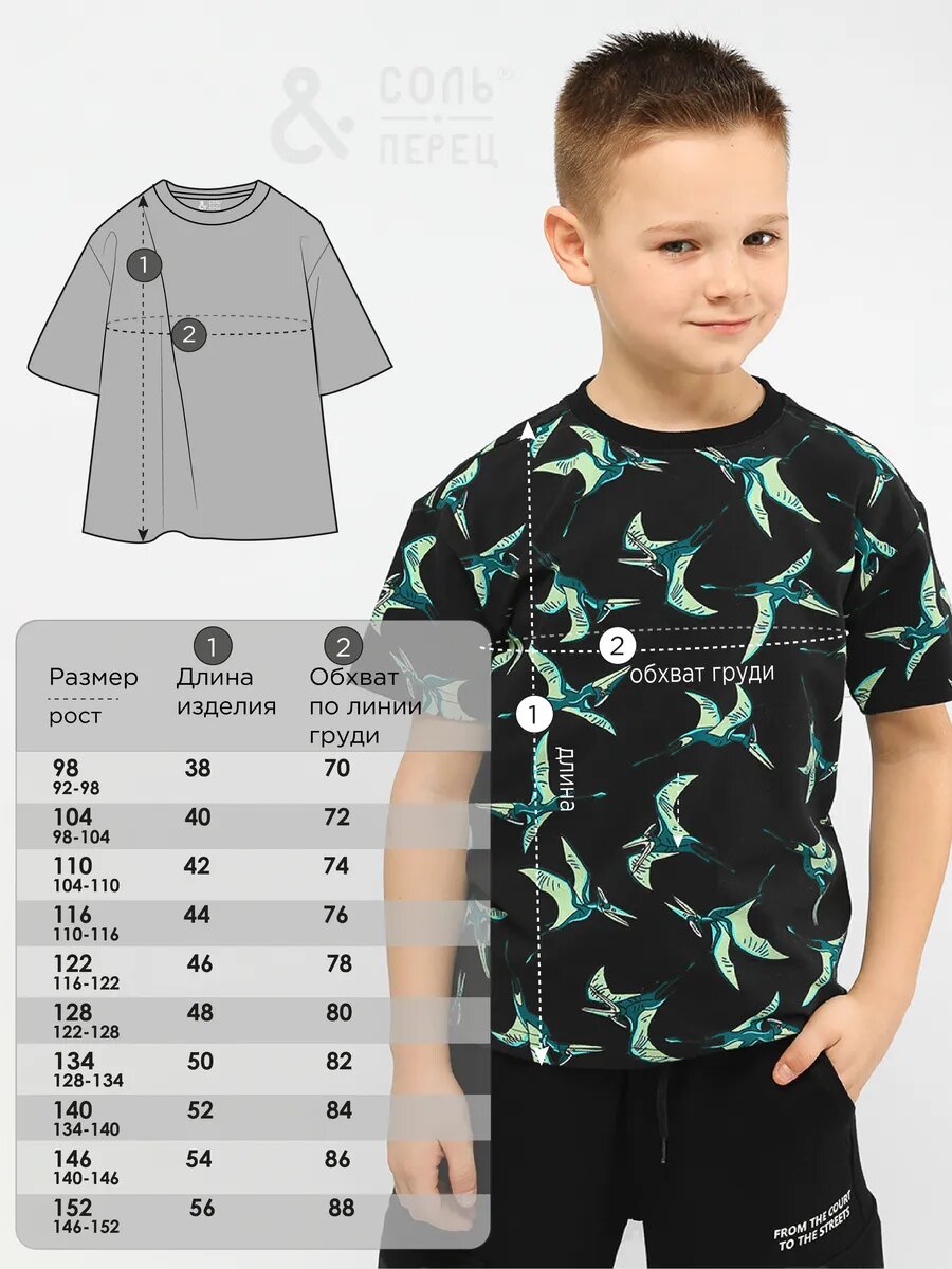 Футболка Соль&Перец с принтом для мальчика, размер 92-98, черный