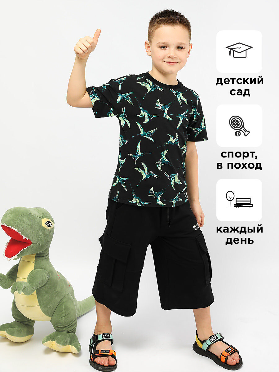 Футболка Соль&Перец с принтом для мальчика, размер 128-134, черный