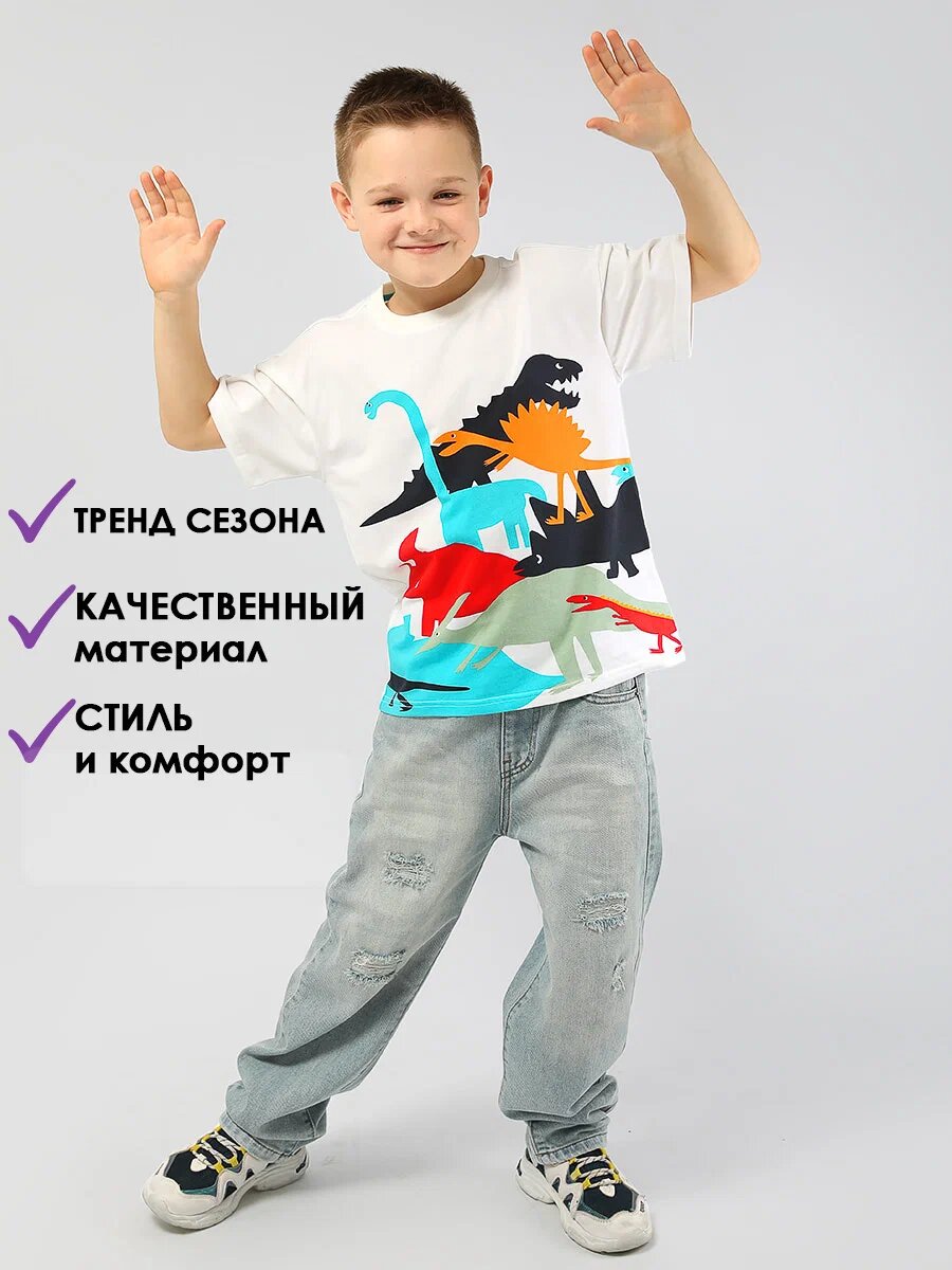 Футболка Соль&Перец с принтом для мальчика, размер 104-110, белый 072