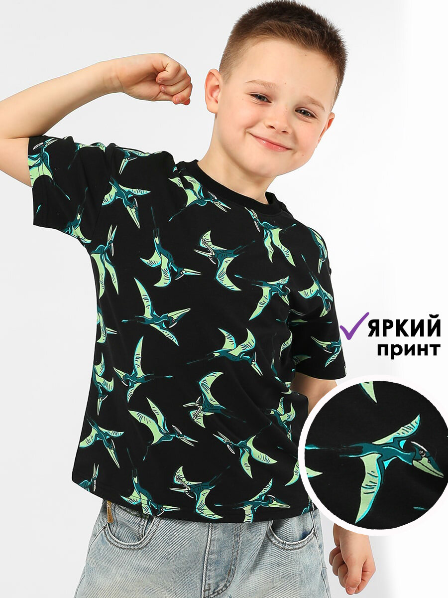 Футболка Соль&Перец с принтом для мальчика, размер 122-128, черный