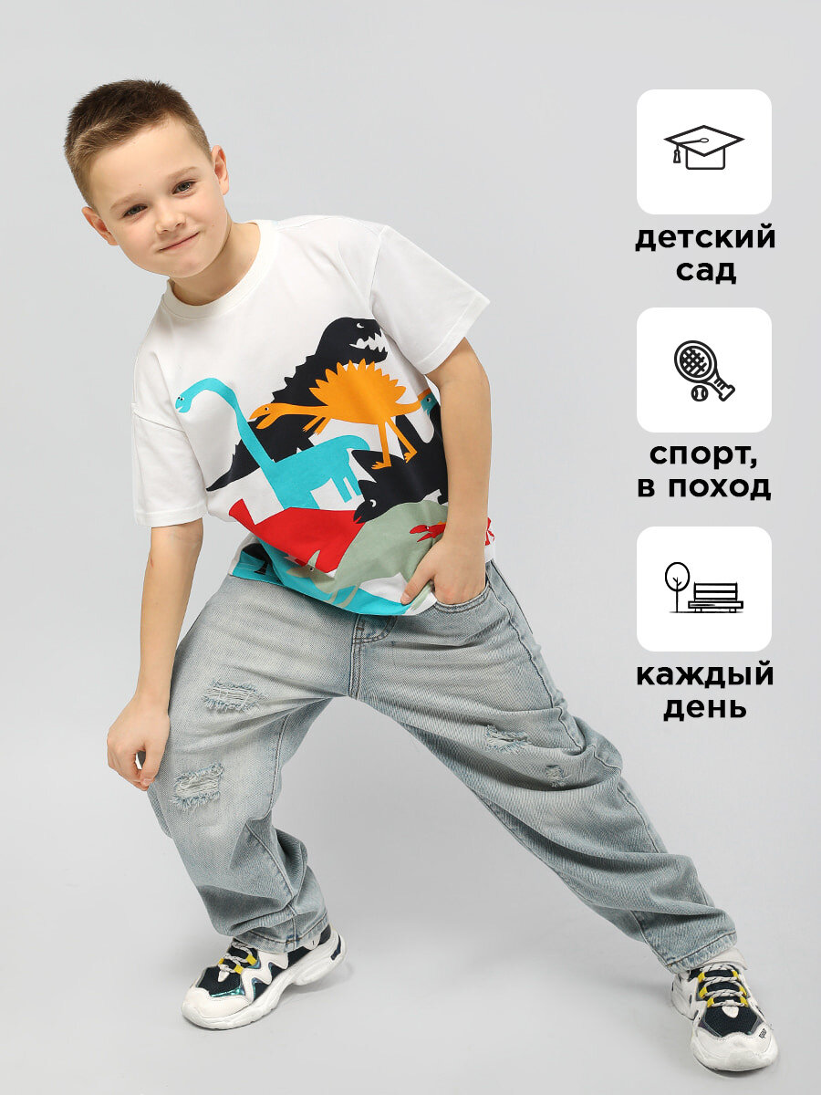 Футболка Соль&Перец с принтом для мальчика, размер 104-110, белый 072