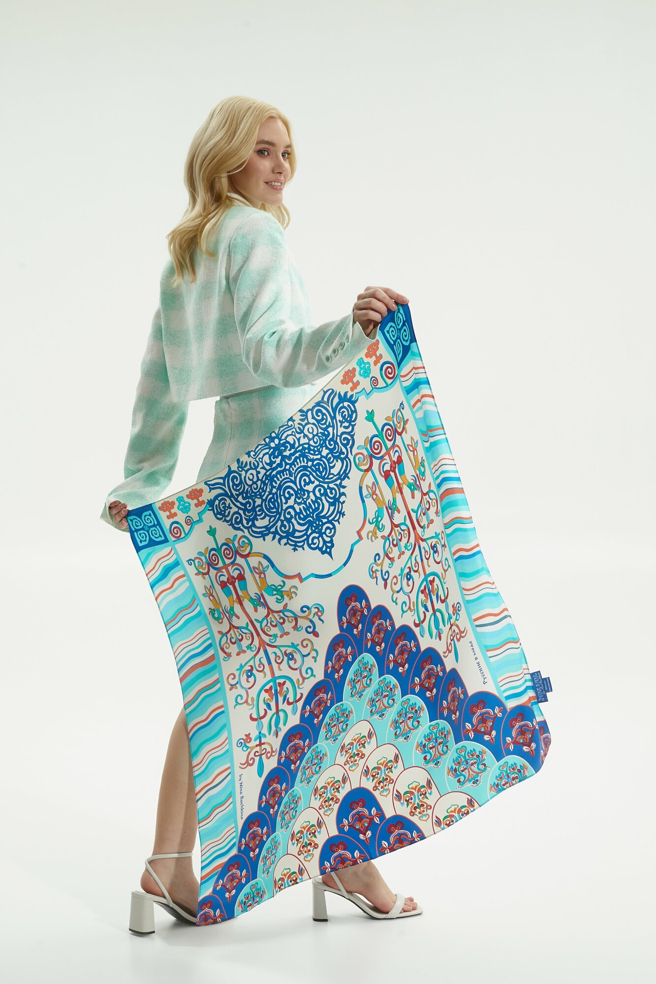 Купить Платок Русские в моде by Nina Ruchkina Легенды Народов Амура для женщин,90х90 см, синий