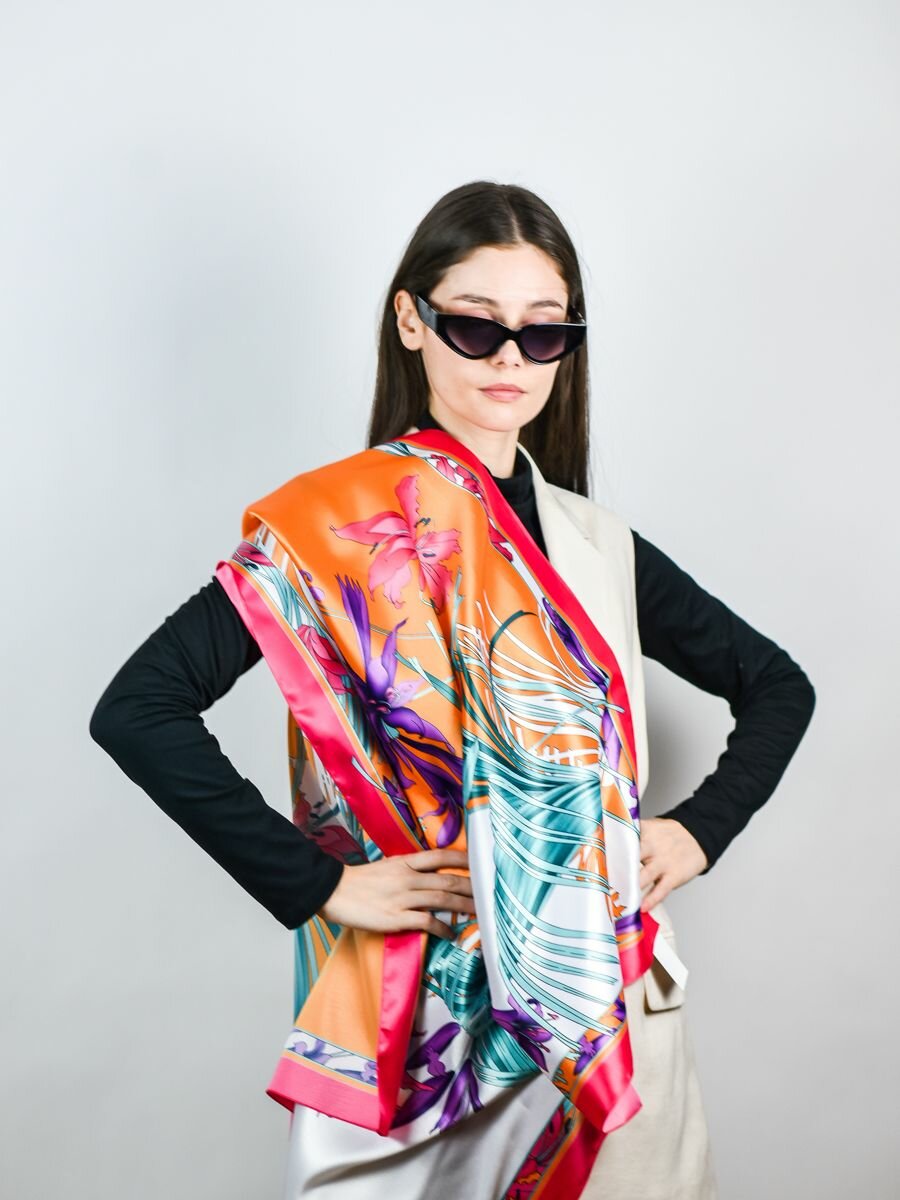Купить Платок VENERA для женщин,90х90 см, фиолетовый, белый, оранжевый, розовый, зеленый