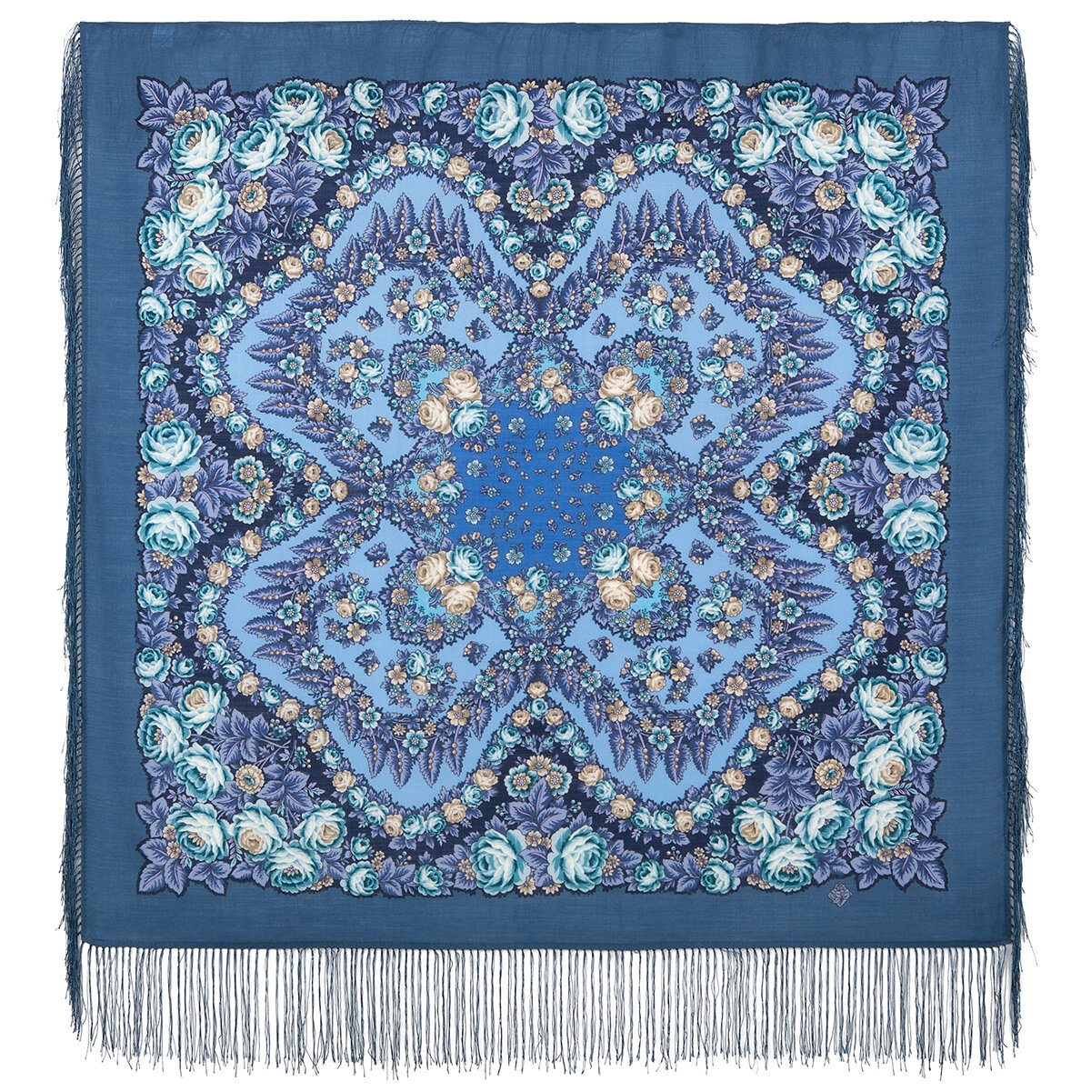 Купить Платок Павловопосадская платочная мануфактура для женщин,89х89 см, серо-голубой
