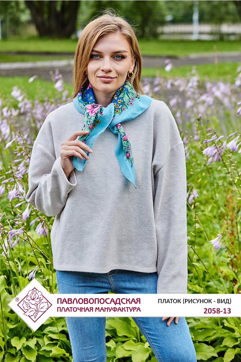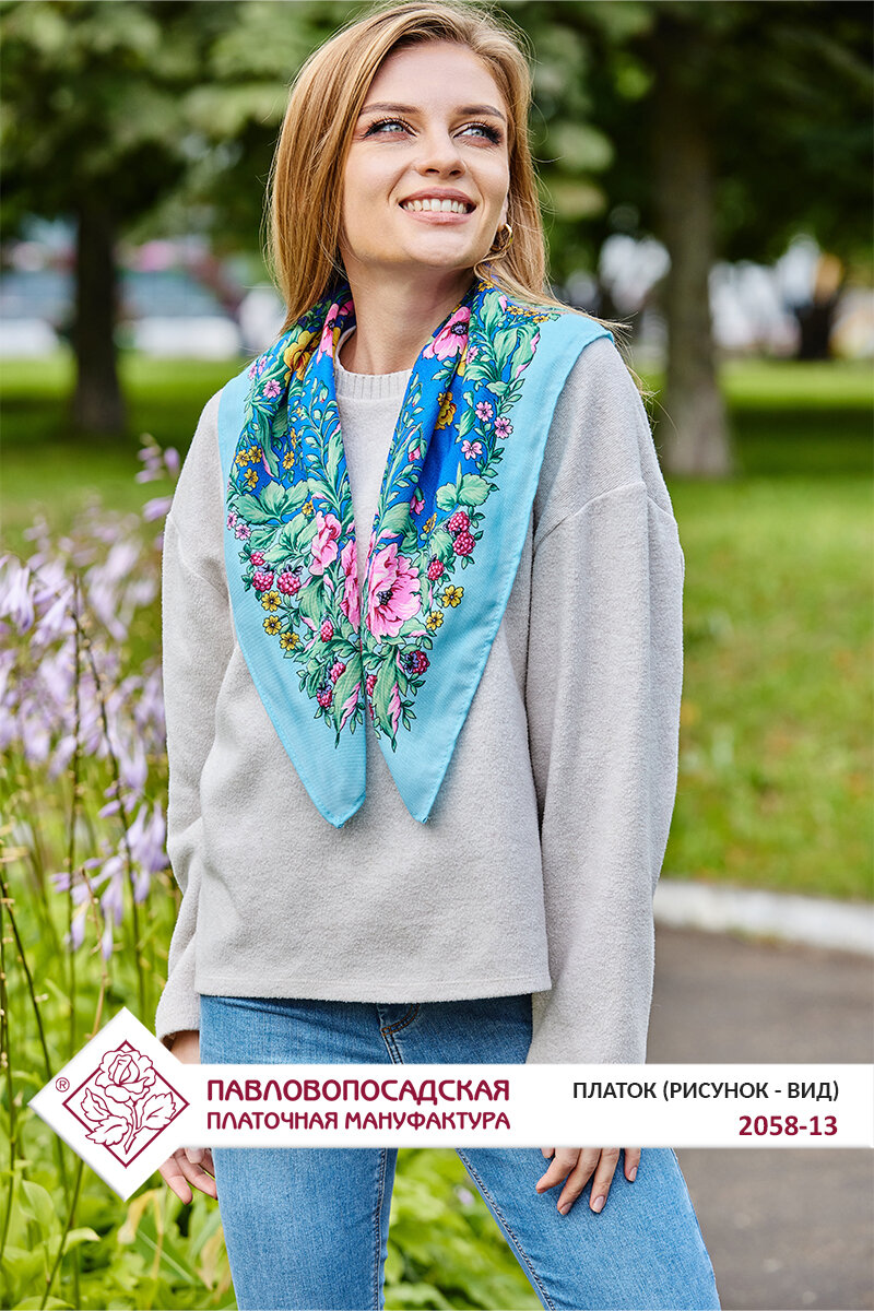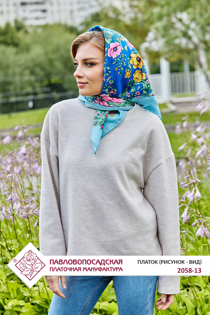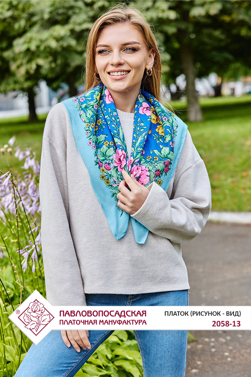 Платок Павловопосадская платочная мануфактура для женщин,72х72 см, синий интересное: