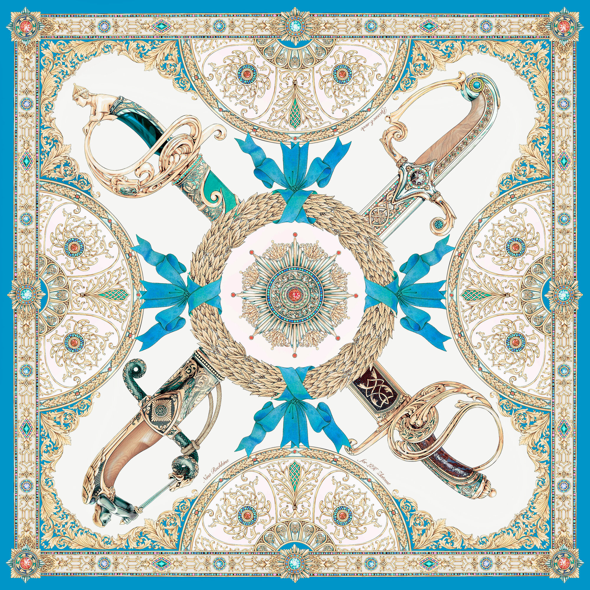 Купить Платок Русские в моде by Nina Ruchkina оружие для девочек и женщин,120х120 см, blue