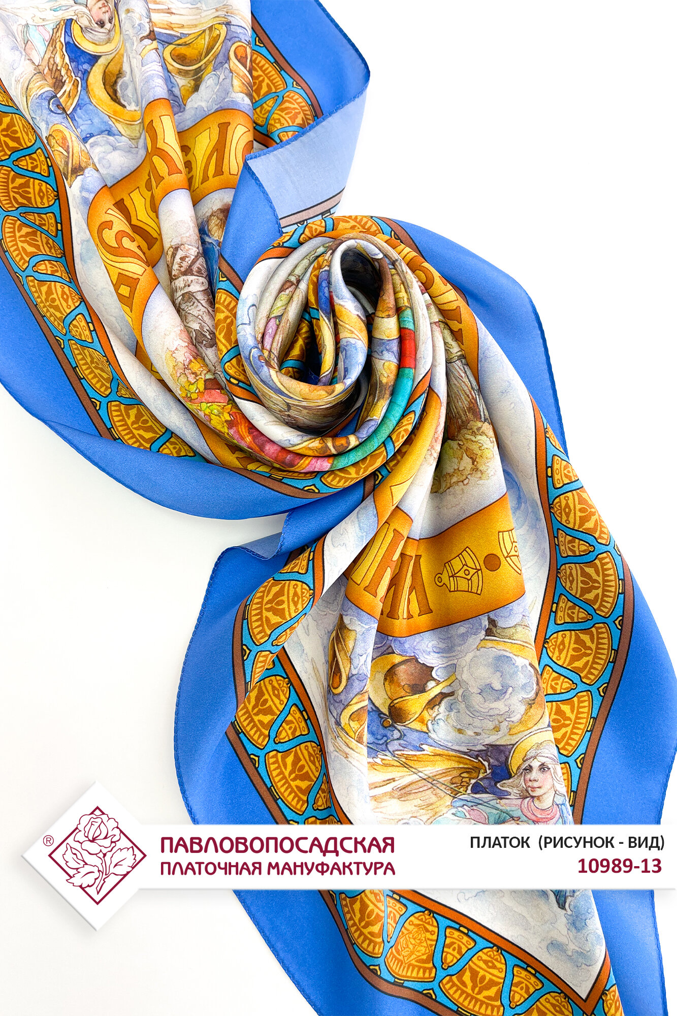 Платок Павловопосадская платочная мануфактура для женщин,89х89 см, белый/синий интересное: