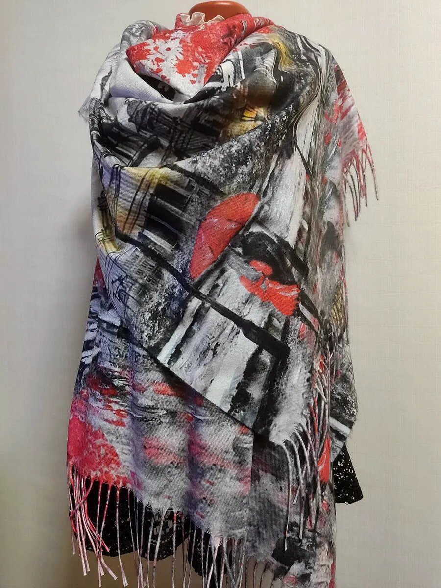Палантин DAMILANA для женщин,180х68 см, серый, фиолетовый, красный интересное: