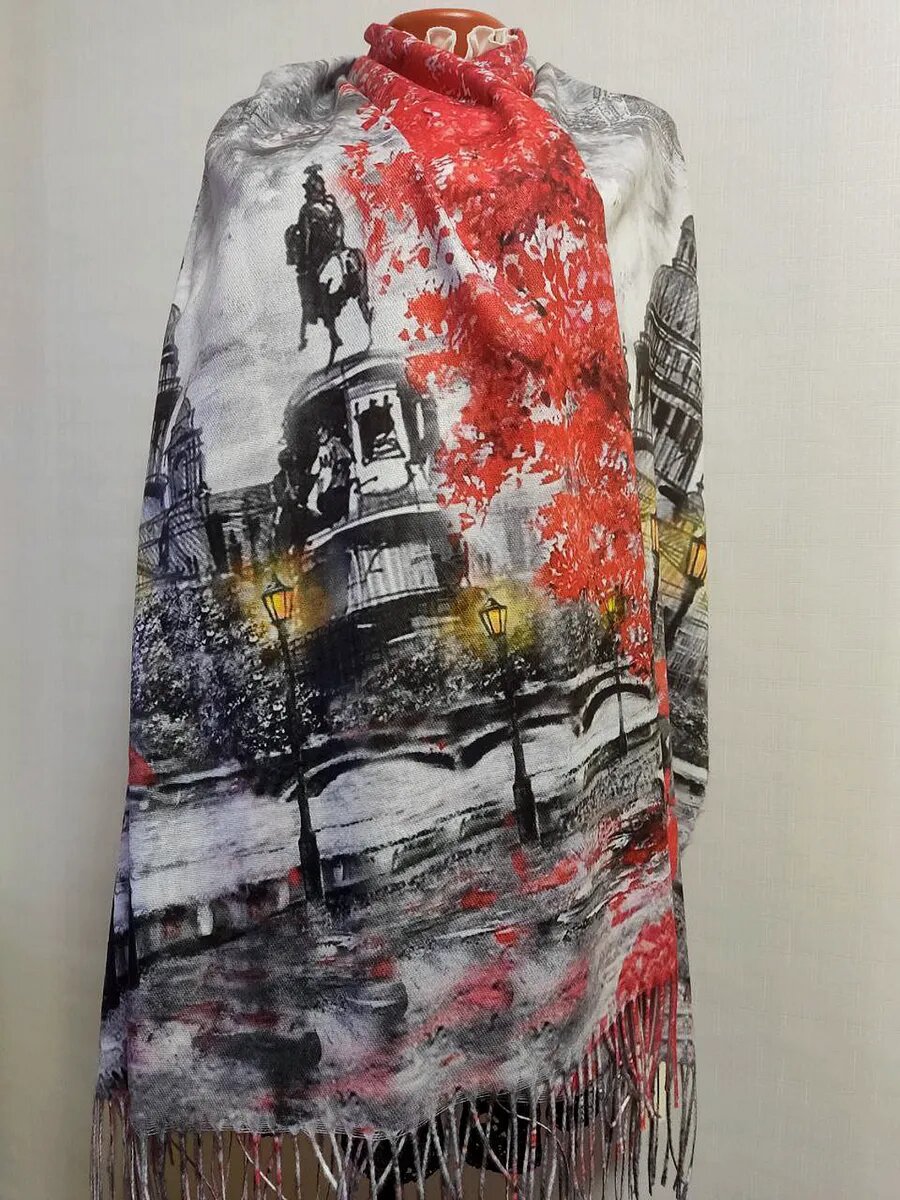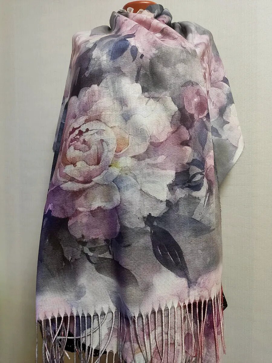 Купить Палантин DAMILANA для женщин,180х68 см, серый, фиолетовый, красный