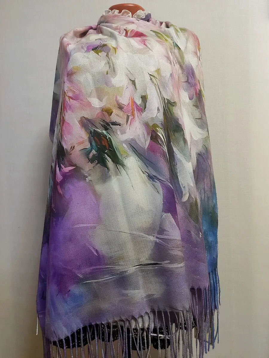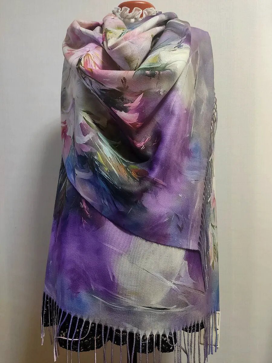 Палантин DAMILANA для женщин,180х68 см, серый, фиолетовый