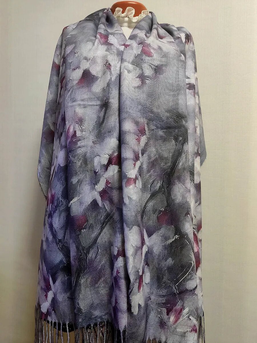 Купить Палантин DAMILANA для женщин,180х68 см, серый, фиолетовый