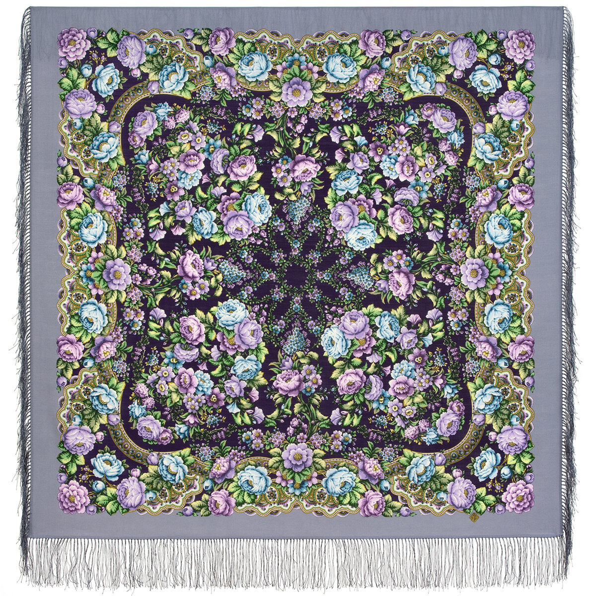 Платок Павловопосадская платочная мануфактура для женщин,125х125 см, серый интересное: