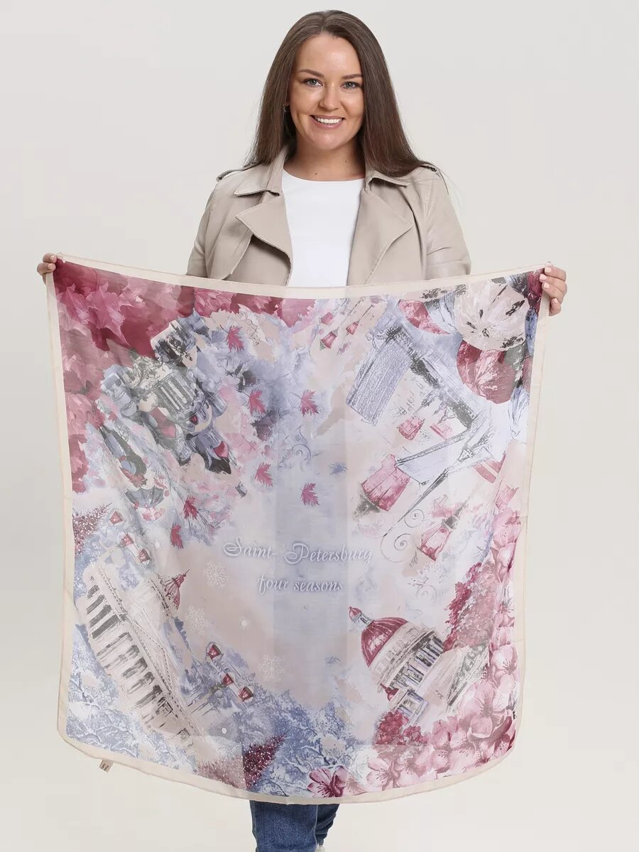 Платок CHEERFUL GIRL для женщин,90х90 см, Бледно -бордовый интересное: