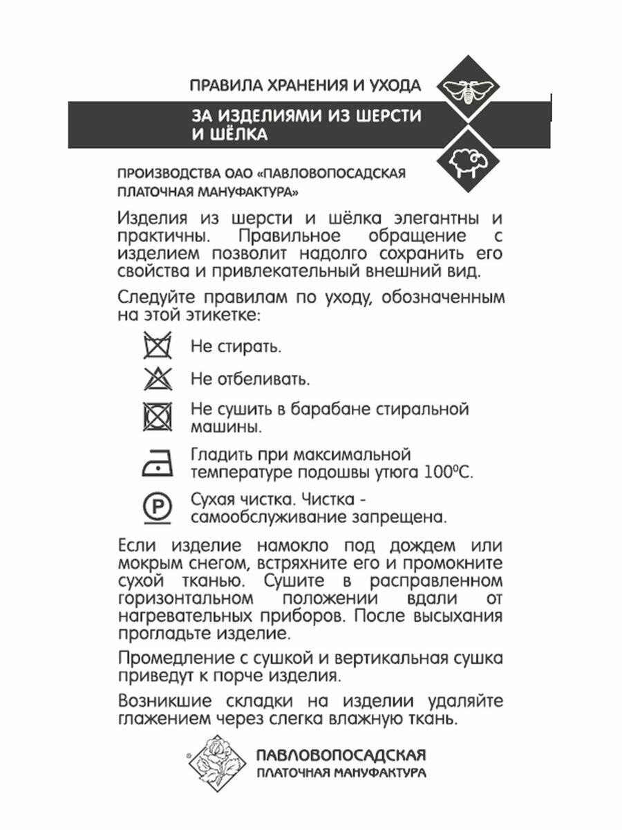 Платок Павловопосадская платочная мануфактура для женщин,65х65 см, белый