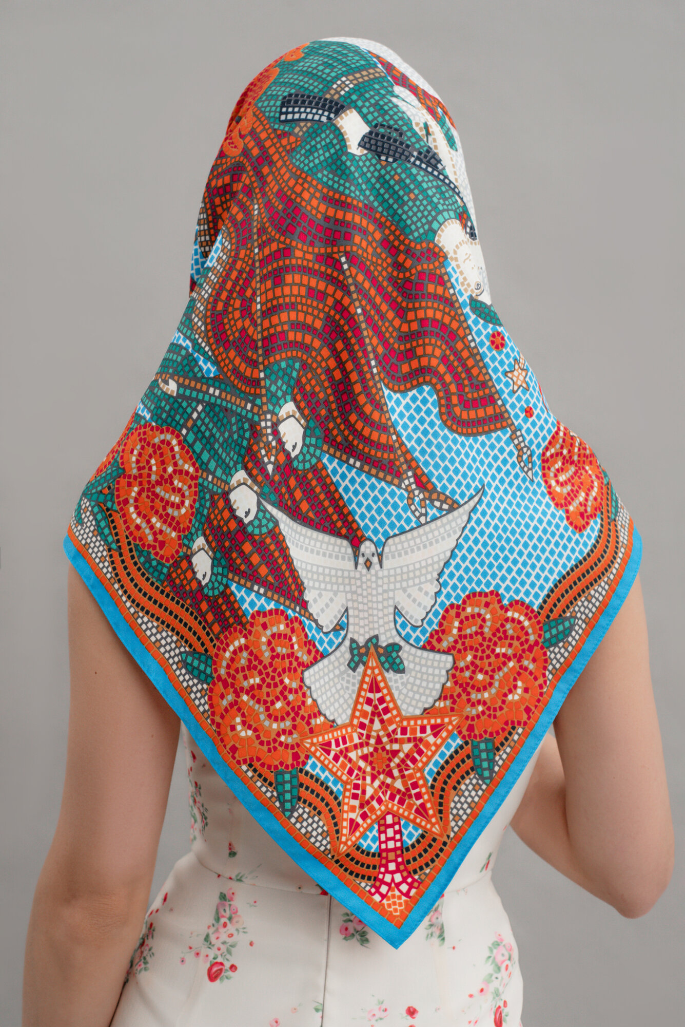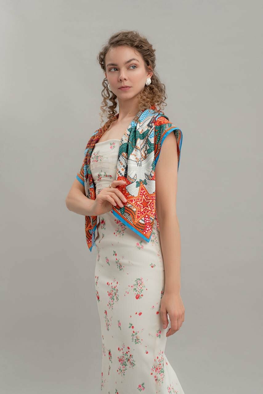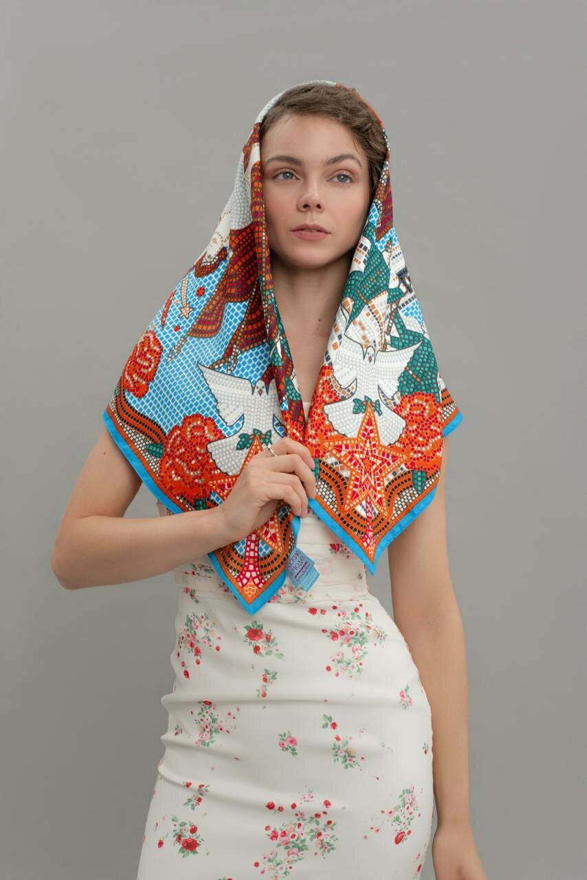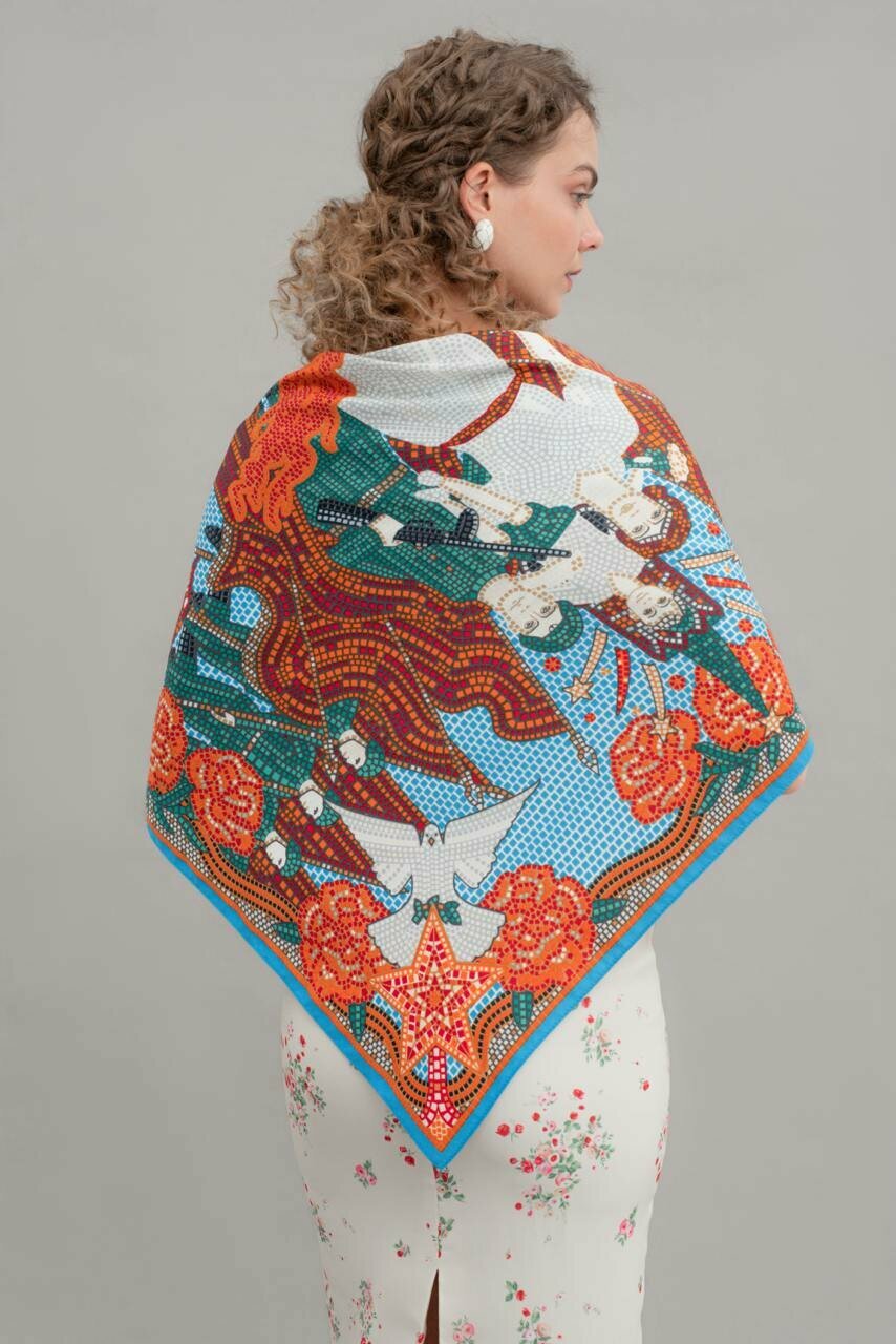Платок Русские в моде by Nina Ruchkina 80 лет Великой Победы для девочек и женщин,90х90 см, красный, голубой интересное: