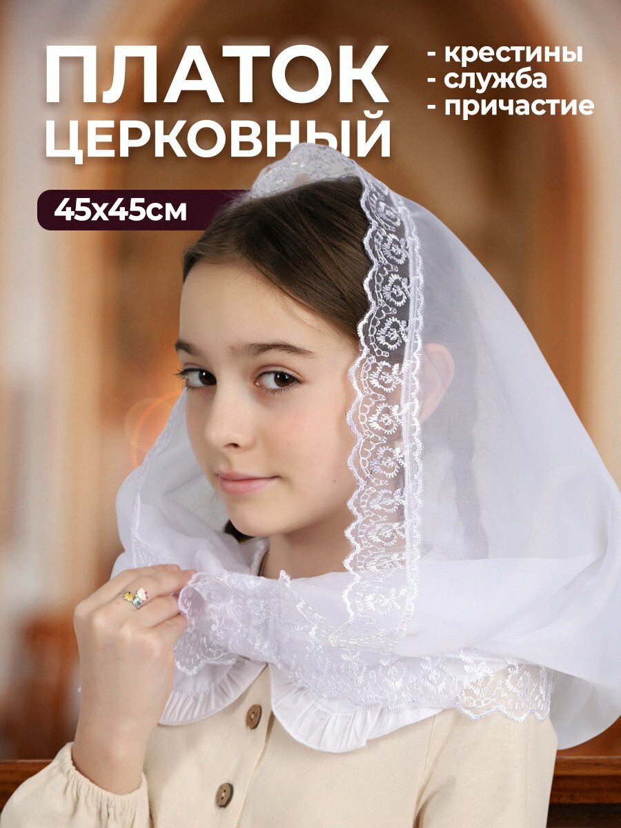 Платок Bio-Line Платок в храм для девочек и женщин,92х45 см, белый интересное: