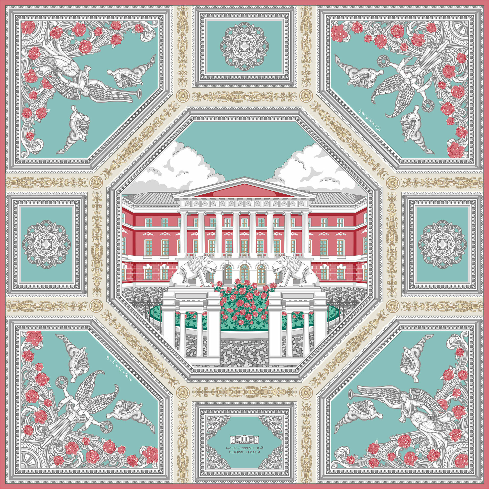 Купить Платок Русские в моде by Nina Ruchkina для девочек и женщин,90х90 см, серый