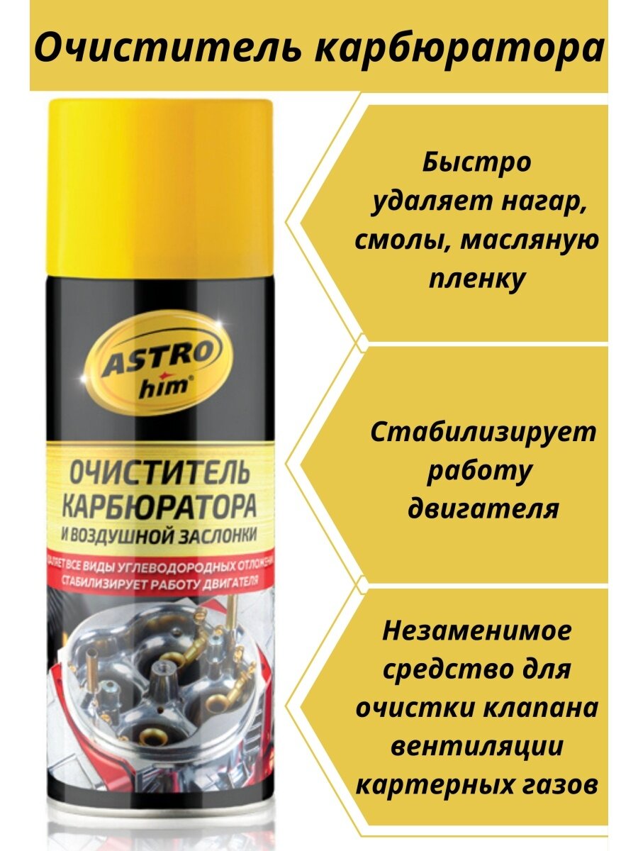 Очиститель карбюратора и воздушной заслонки, аэрозоль 650 мл astrohim ac1416