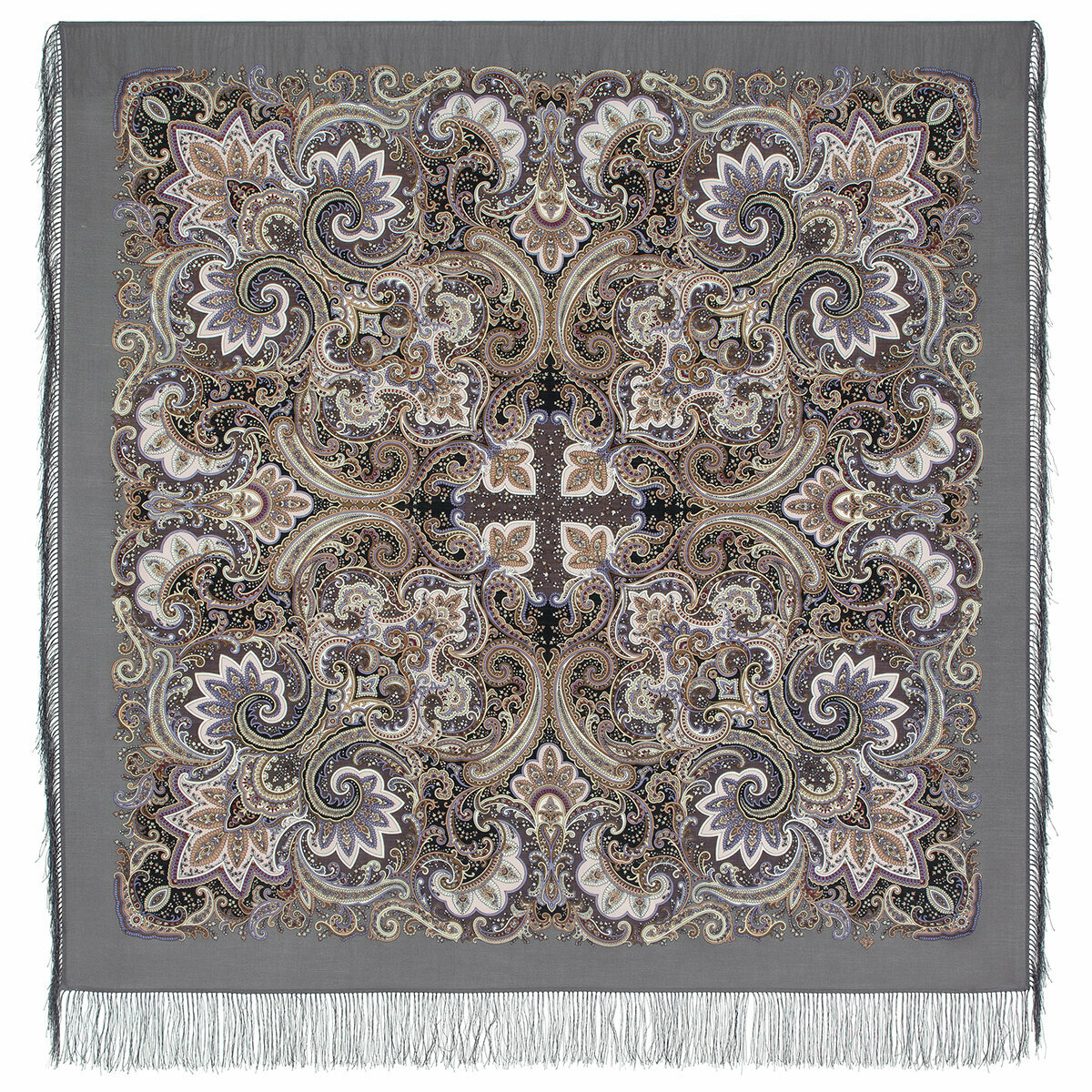 Платок Павловопосадская платочная мануфактура для женщин,146х146 см, серый интересное: