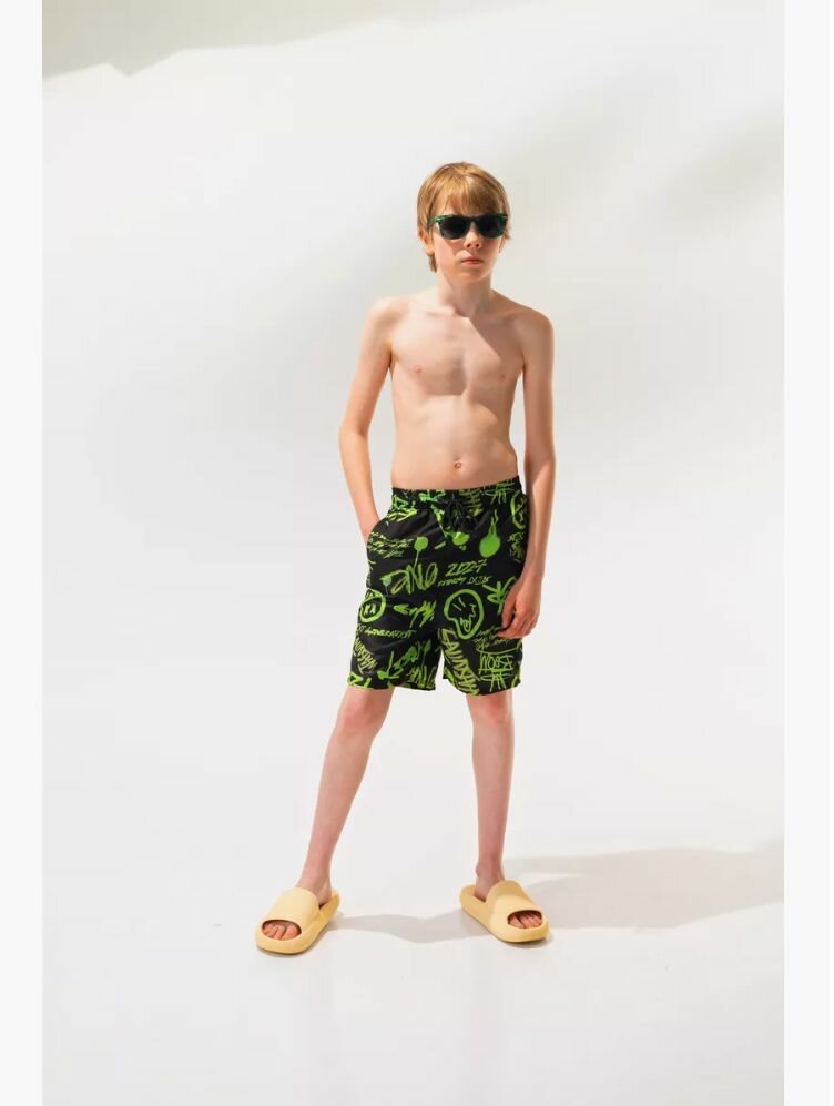 Шорты RINREY Весна-лето 2024, размер 128, черный/салатовый