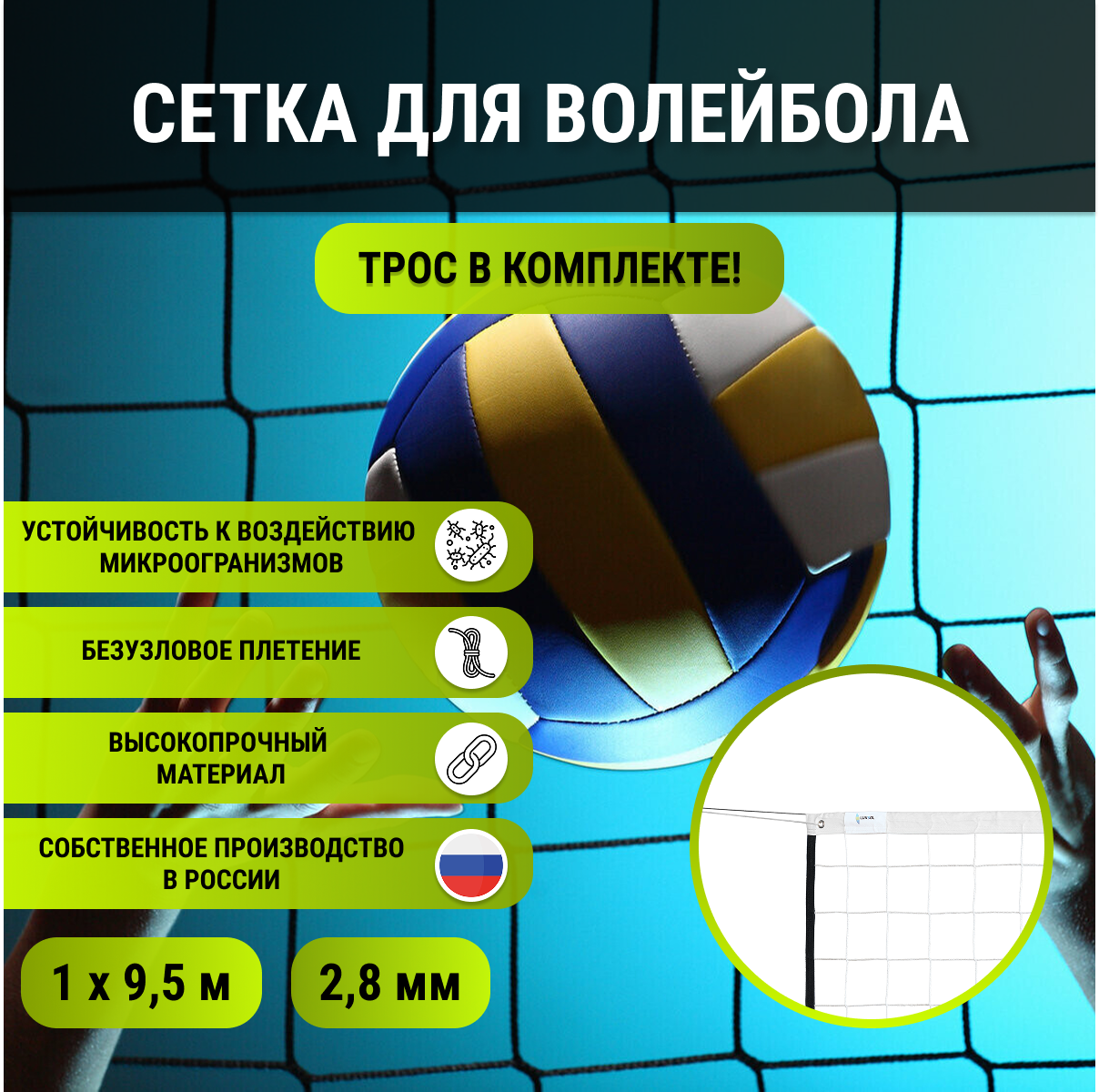 Волейбольная сетка с тросом, 2,8 мм, 100х100, 1х9,5м, ПП интересное: