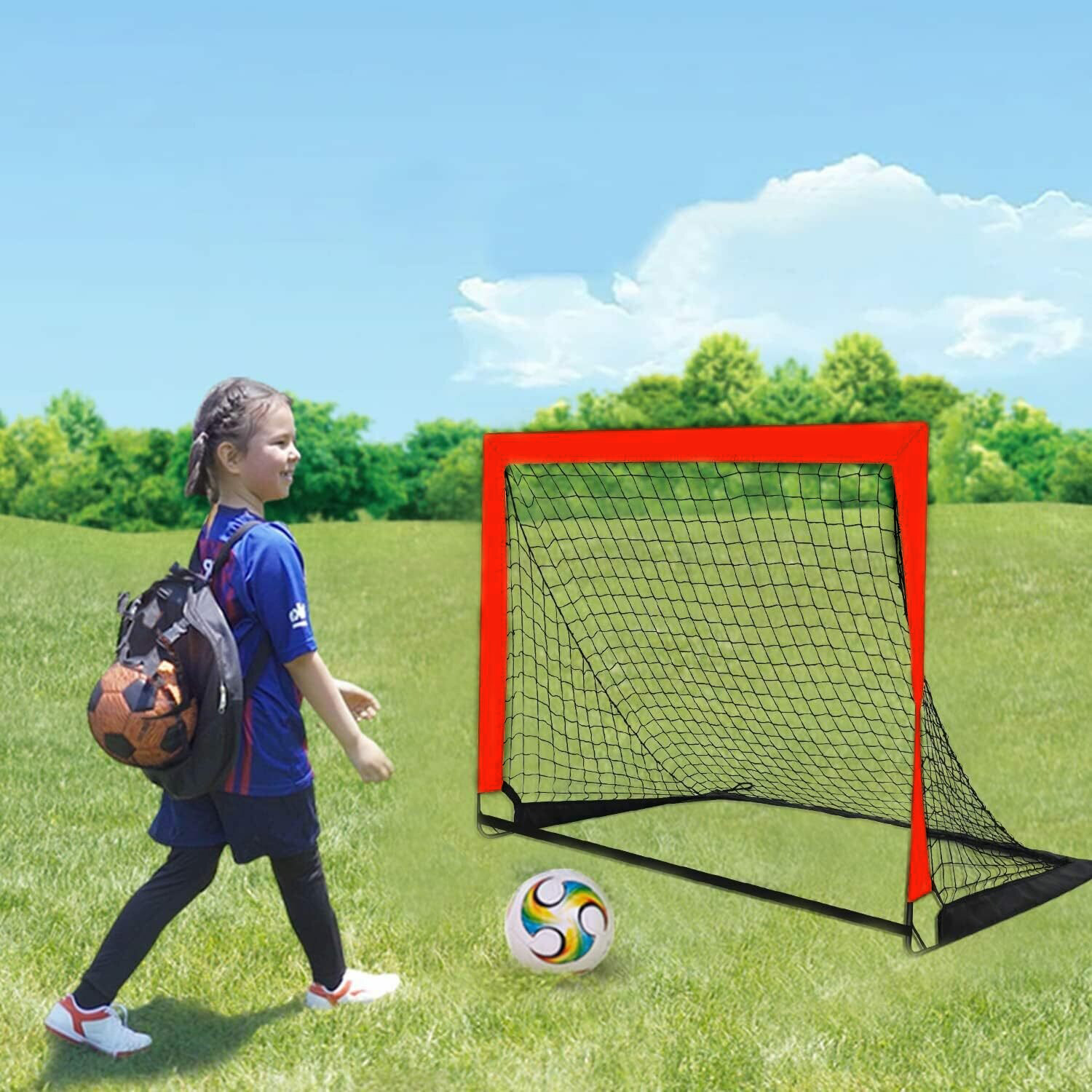 Купить Детские футбольные ворота складные, материал оксфорд, сетка из полиэстера, красные