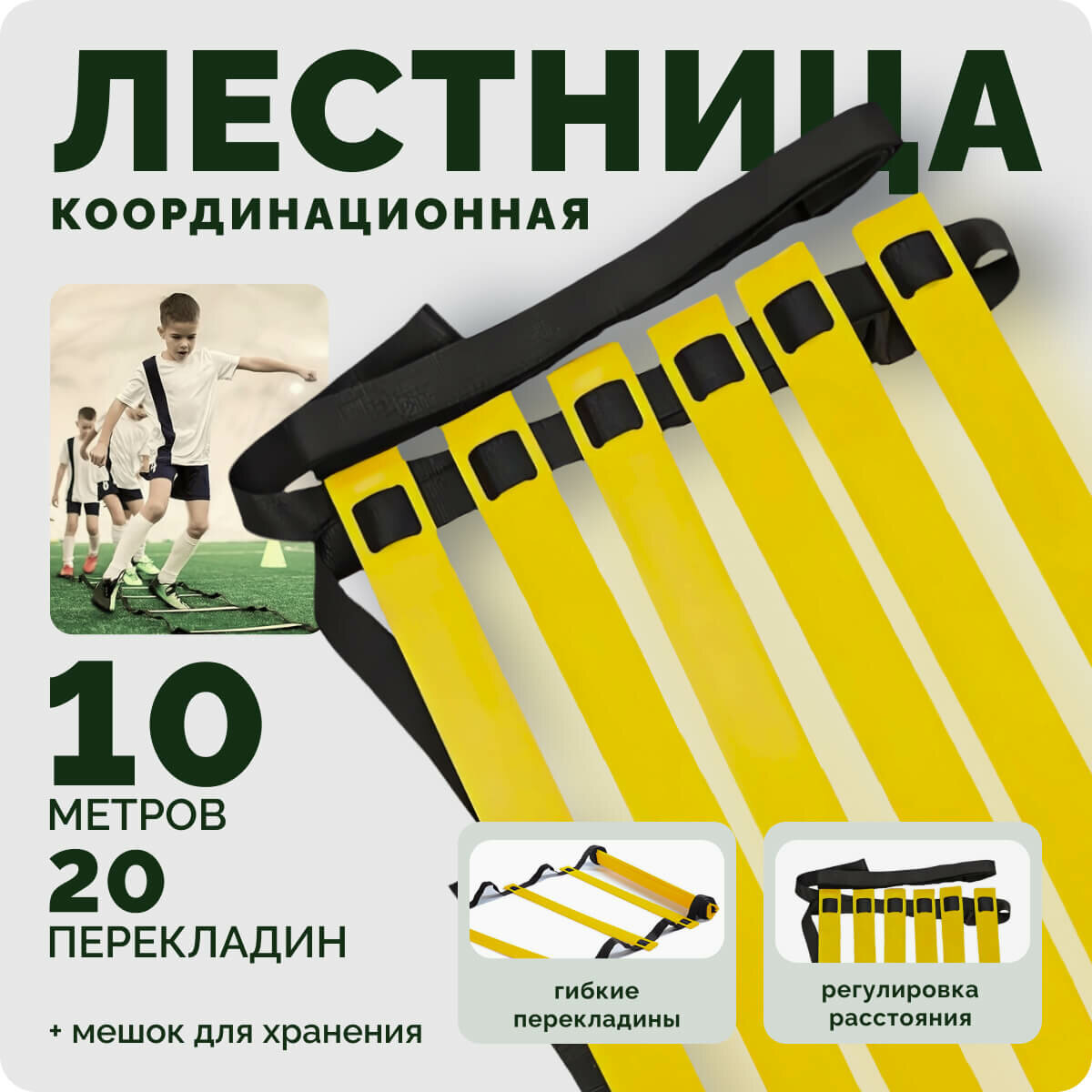 Координационная лестница, для тренировок, 10 м, с чехлом, желтая интересное: