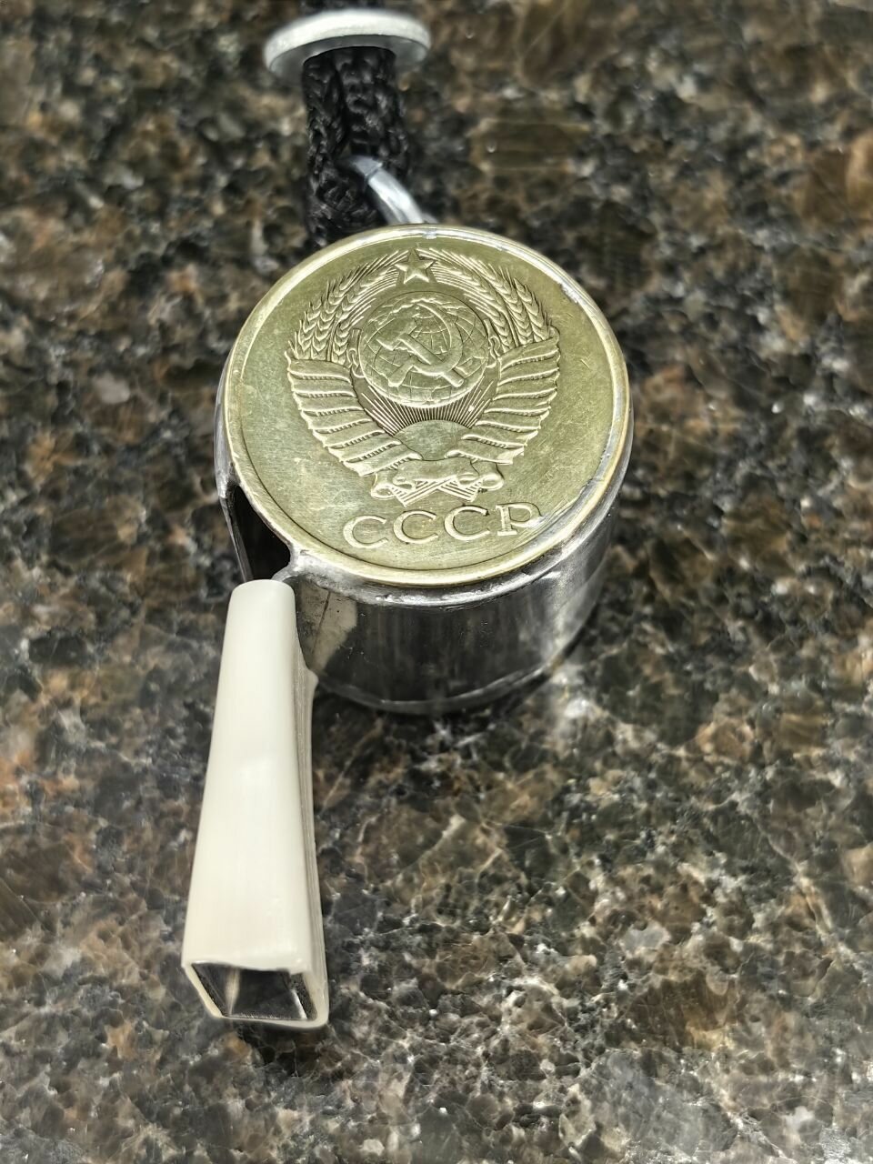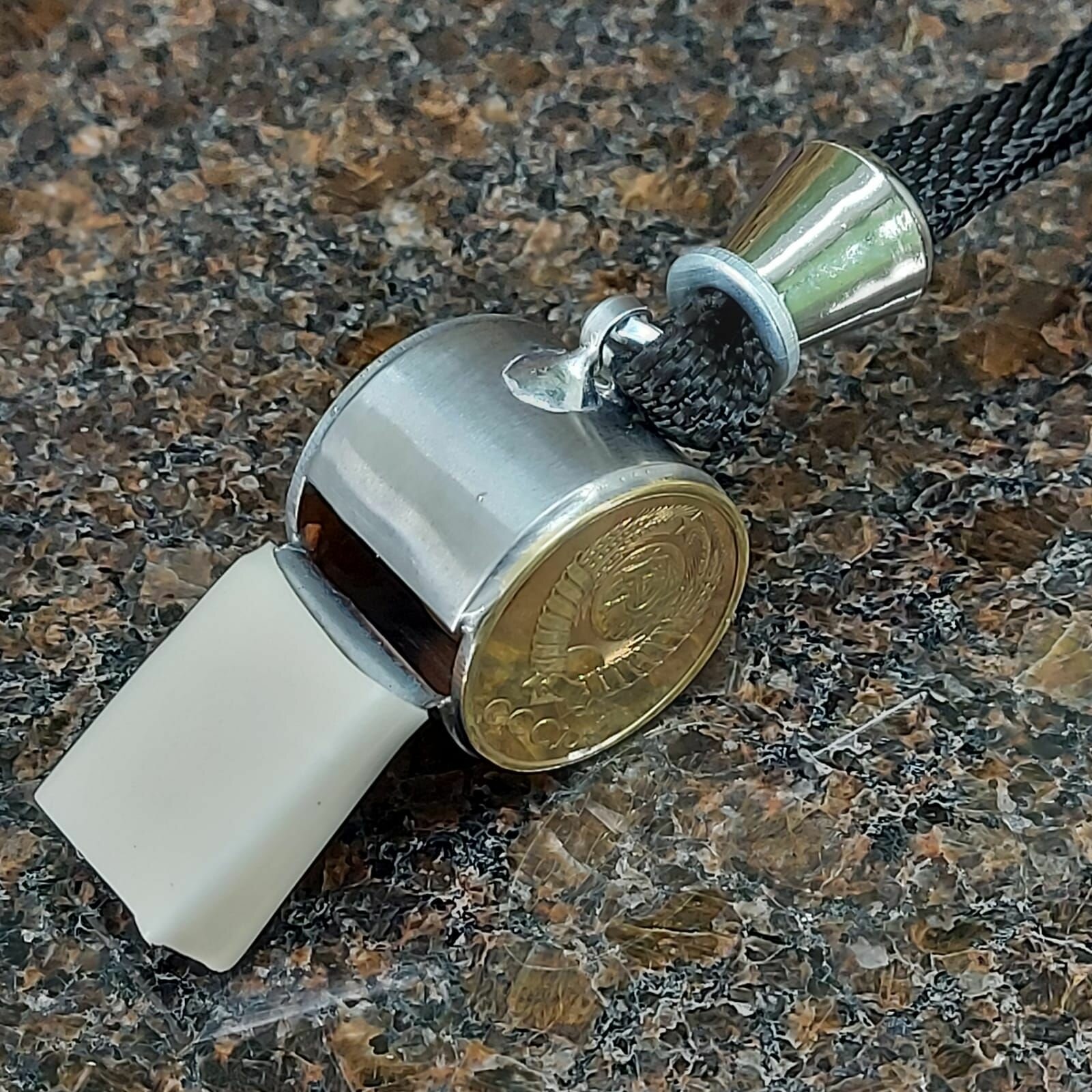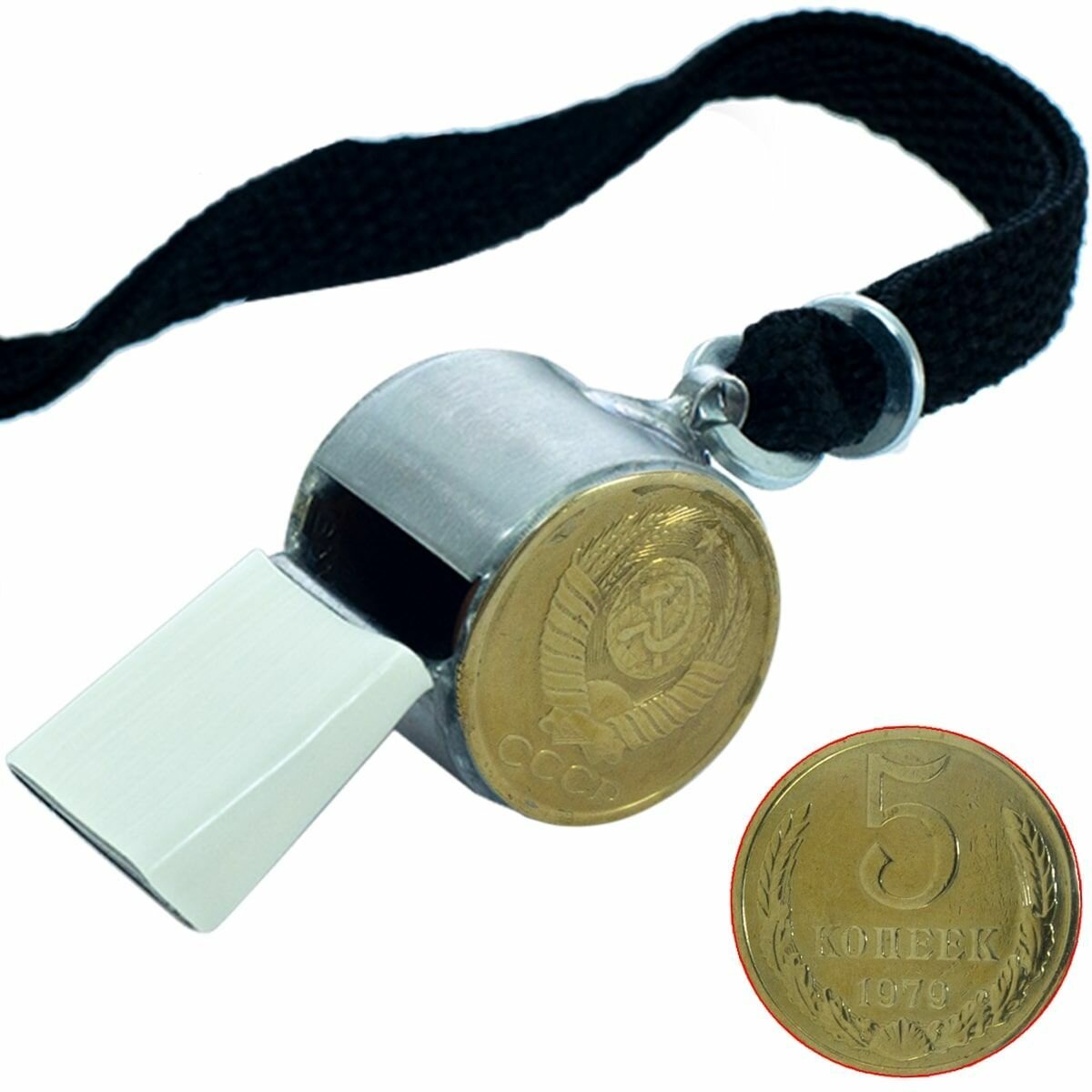 Свисток сувенирный с монетой СССР 5 копеек 1979 г. серебристый интересное: