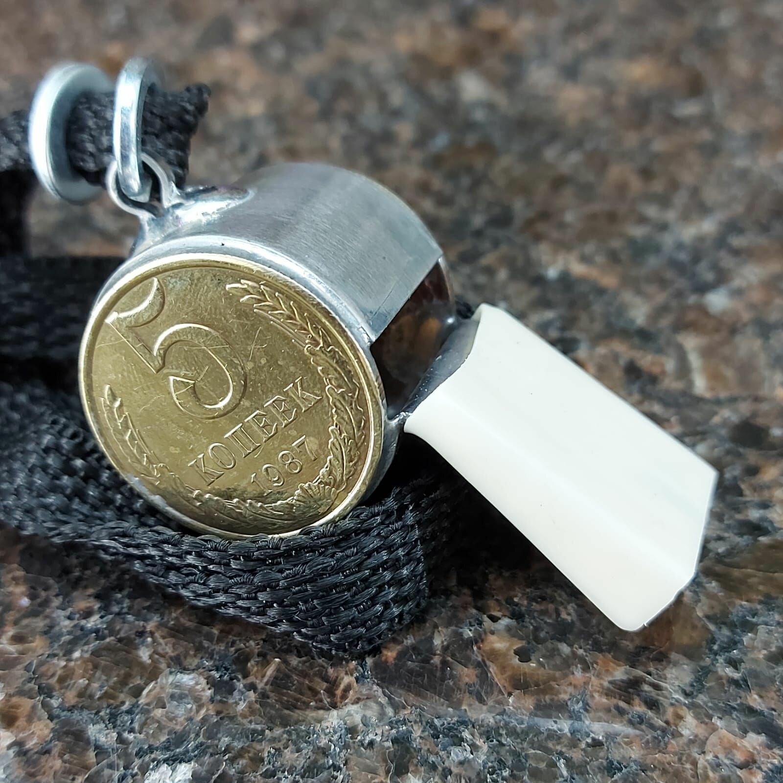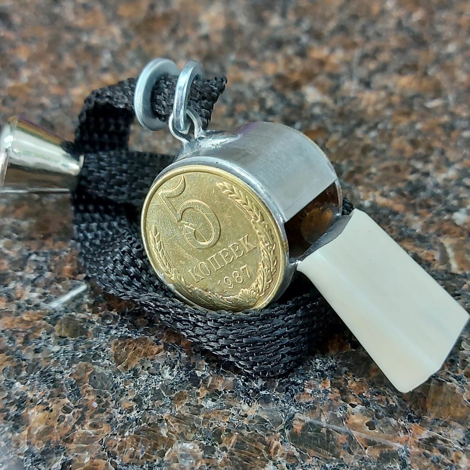 Свисток сувенирный с монетой СССР 5 копеек 1987 г. серебристый интересное: