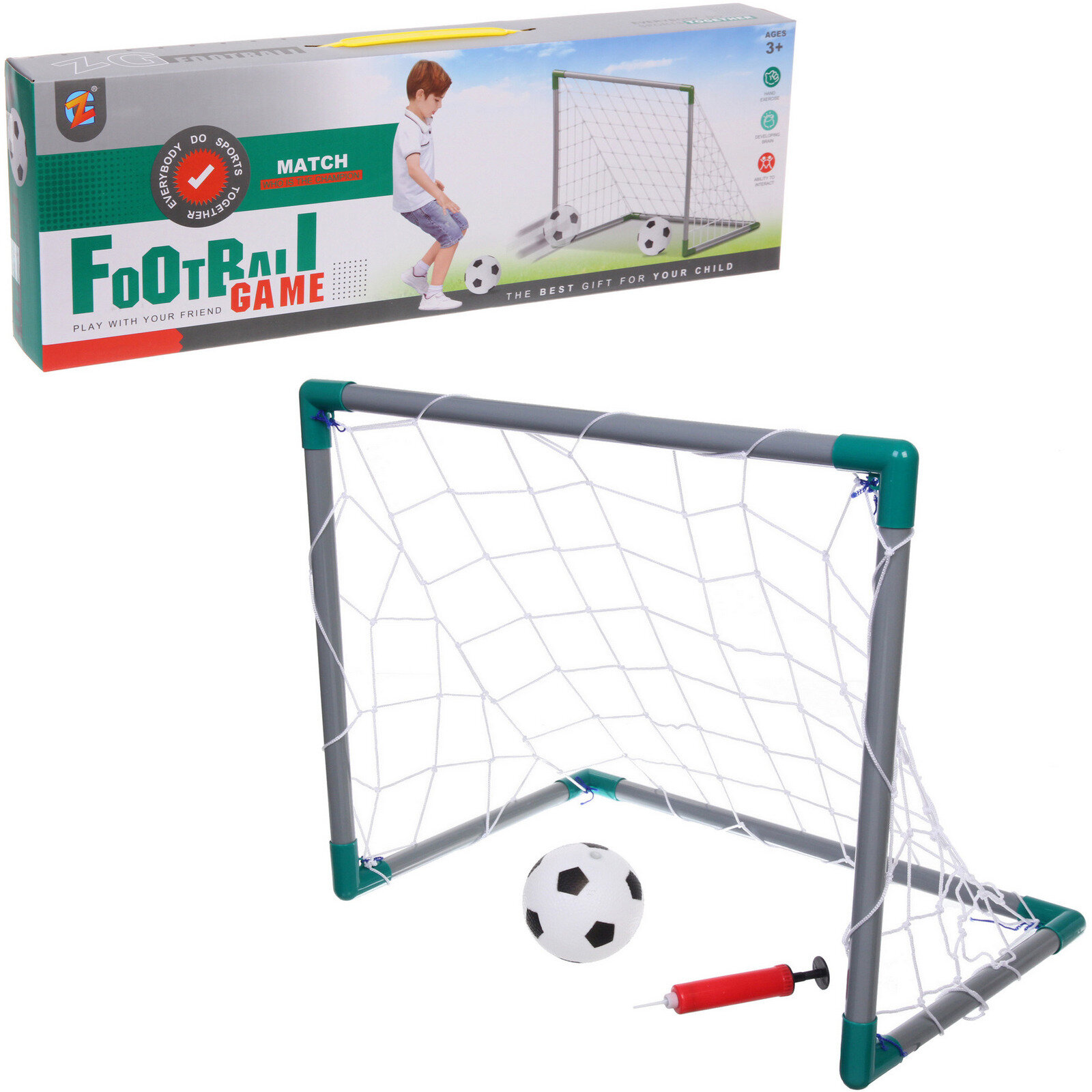 Набор тренировочный для футбола ZG270-226: ворота 56,5*37,5*46,5 см, мяч 10 см, насос интересное: