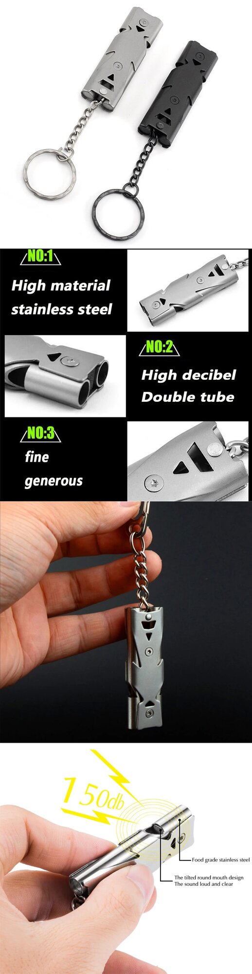 Свисток с высоким децибелом и двойной трубкой, из нержавеющей стали, 1 шт, цвет в ассортименте, Dark gray интересное: