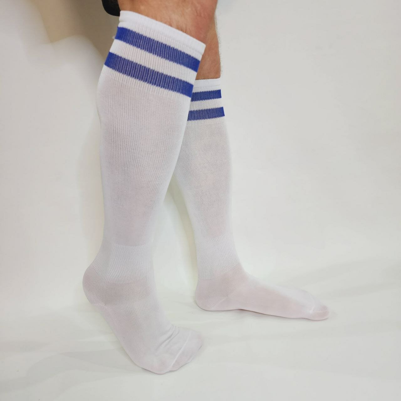Гетры футбольные , размер 30-37, синий/белый