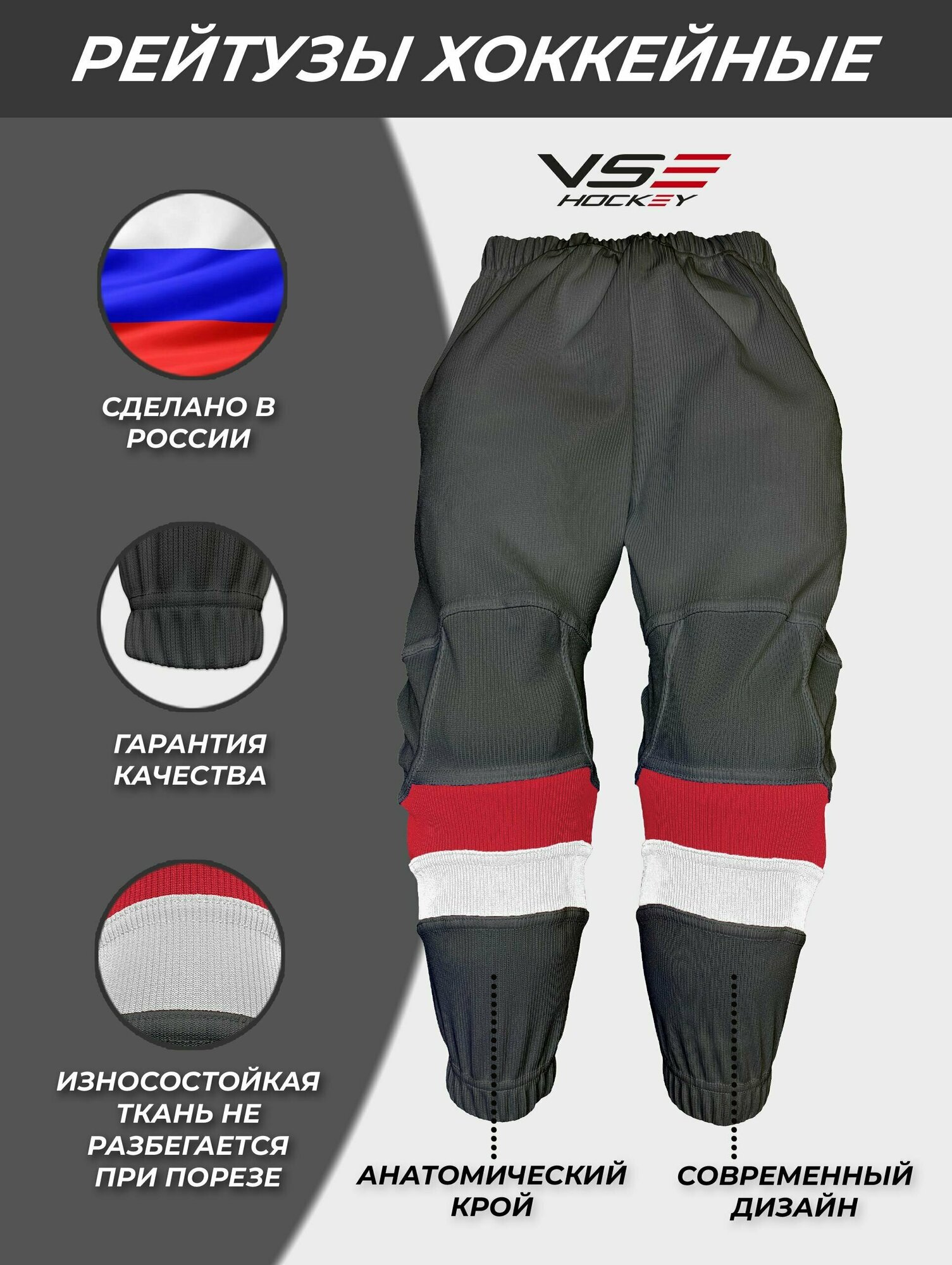 Рейтузы хоккейные VseHockey Базовая коллекция, размер YTH-1+, красный, черный, белый интересное: