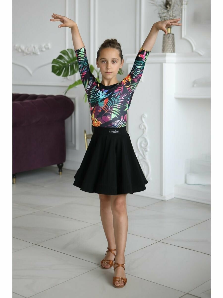 Купальник для гимнастики и танцев Sardana Базовая коллекция, размер 122-128, зеленый, фуксия, черный, оранжевый, голубой интересное: