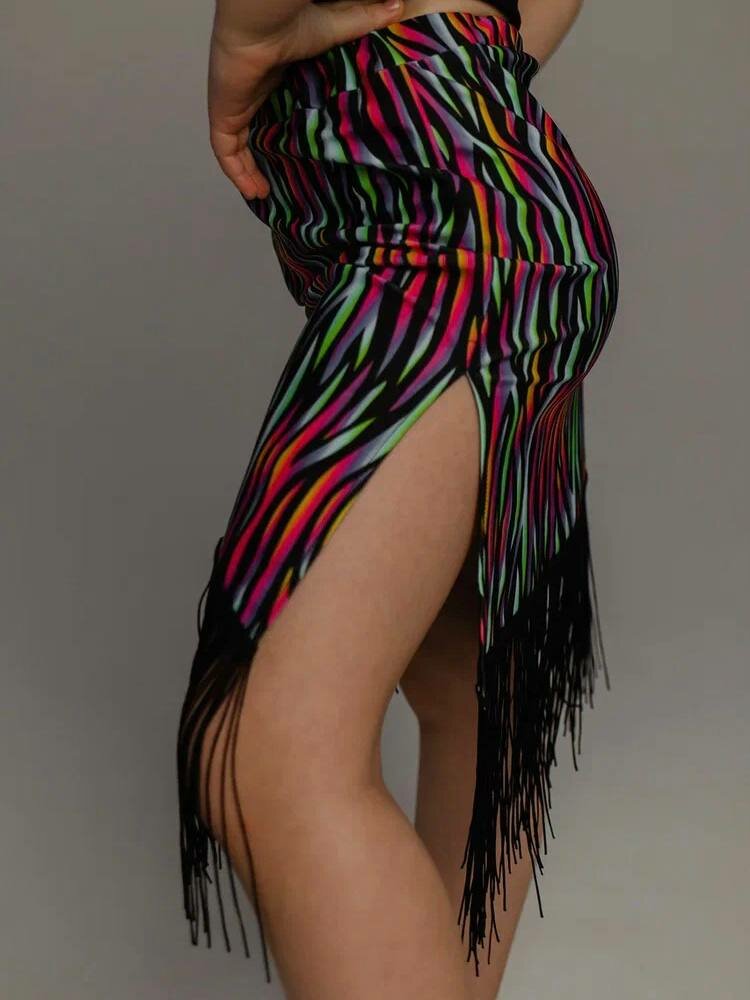 Купить Юбка для гимнастики и танцев Детская юбка для танцев с бахромой, размер 128/134, разноцветный