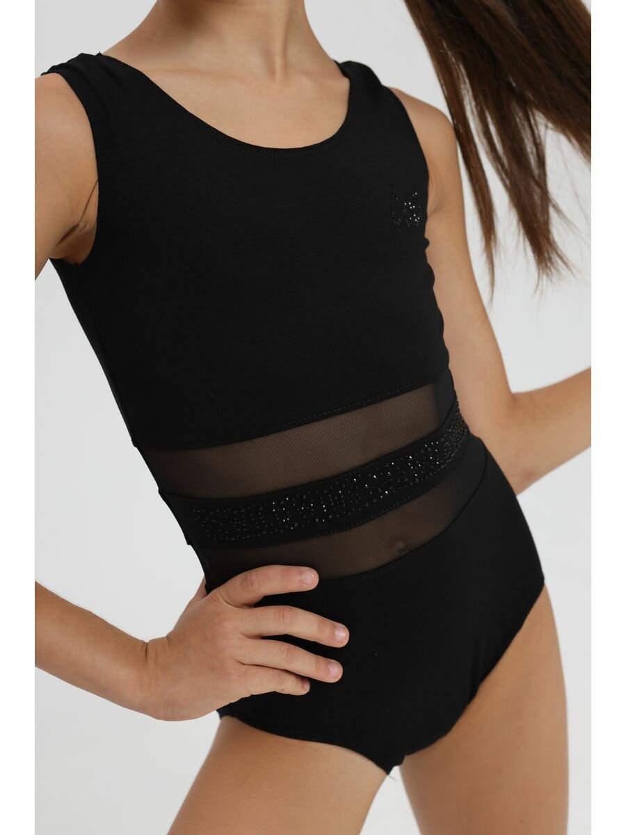 Купальник для гимнастики и танцев WILDWINS Базовая коллекция, размер 128, черный