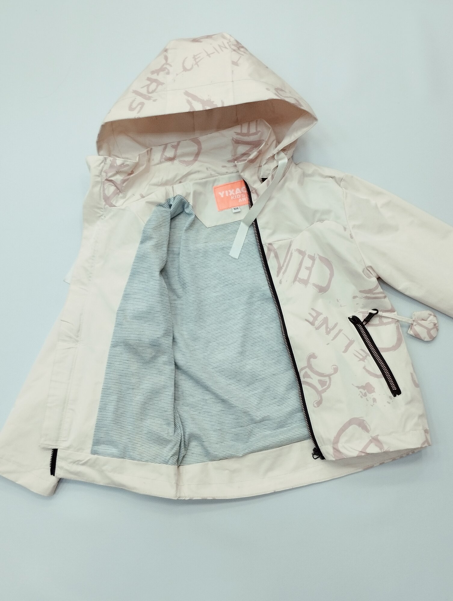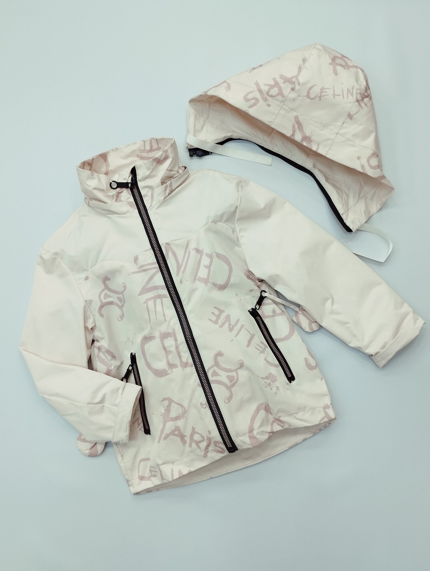 Ветровка Мой Ангелок удлиненная, с капюшоном, легкая, тонкая, размер 116, молочный
