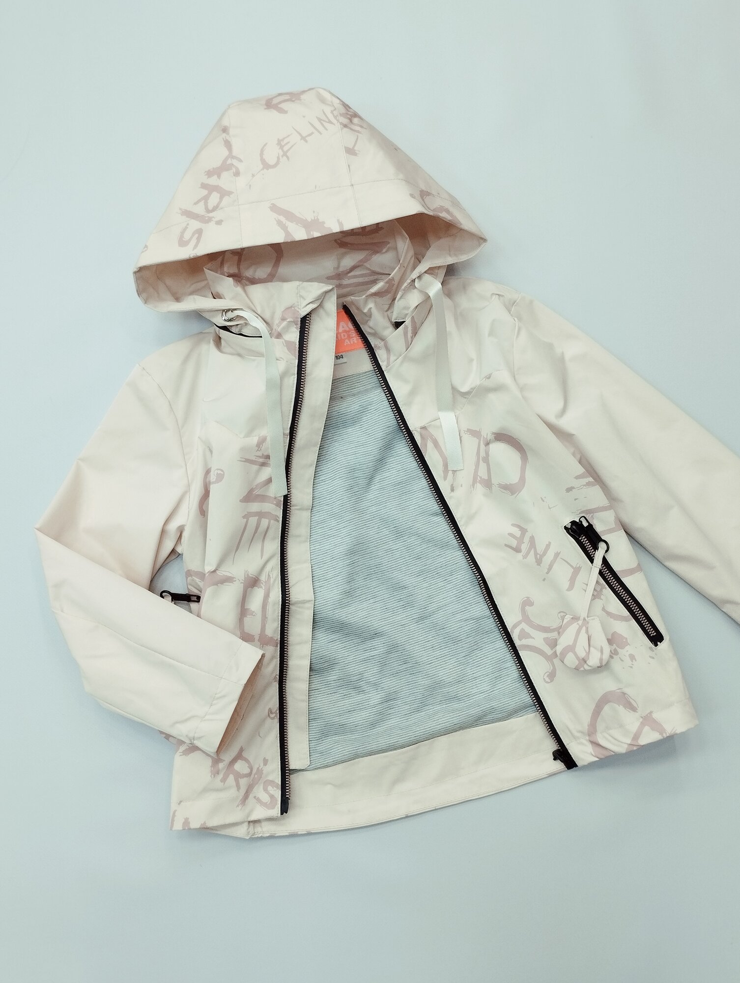 Ветровка Мой Ангелок удлиненная, с капюшоном, легкая, тонкая, размер 116, молочный интересное: