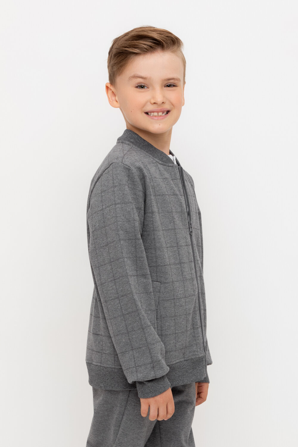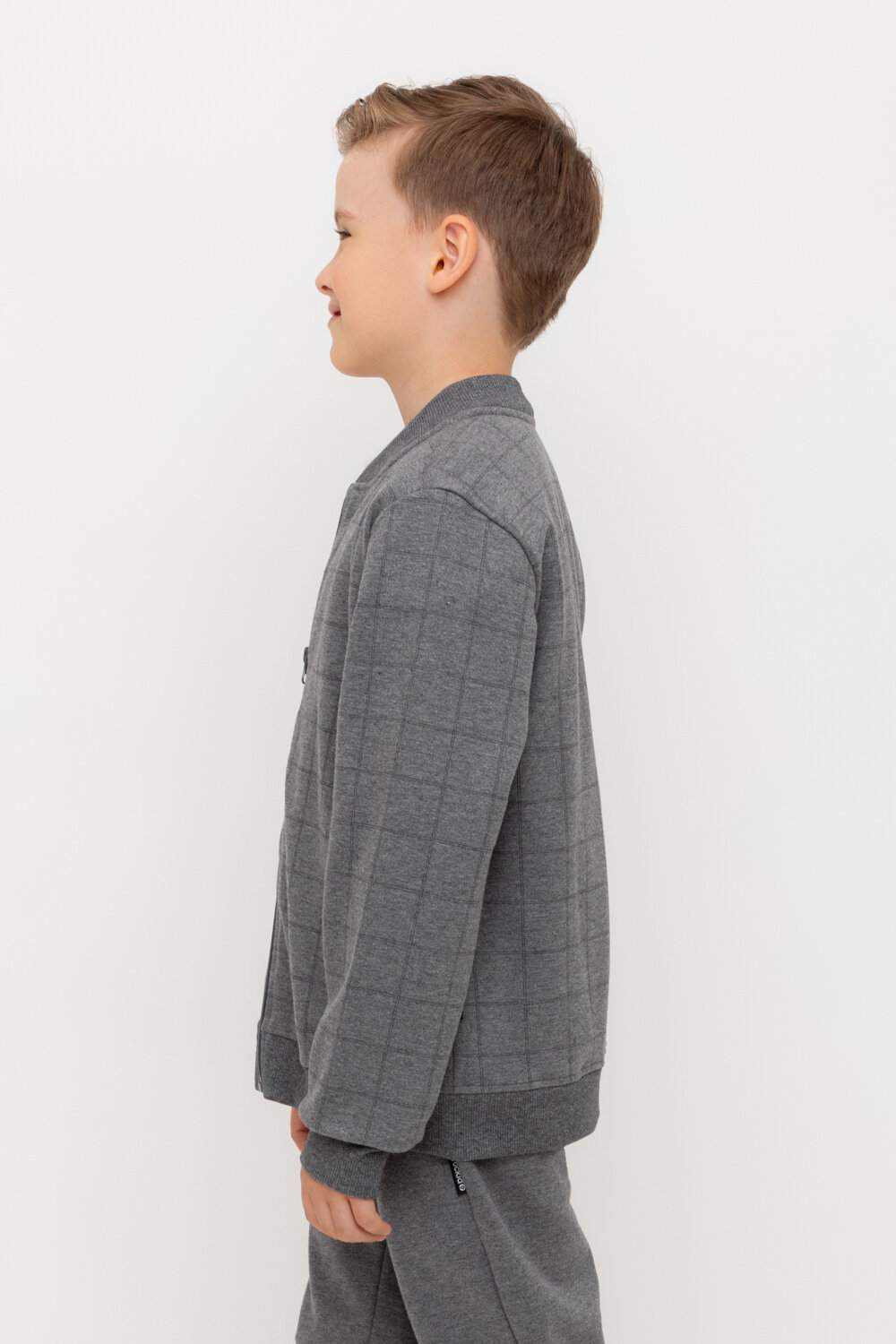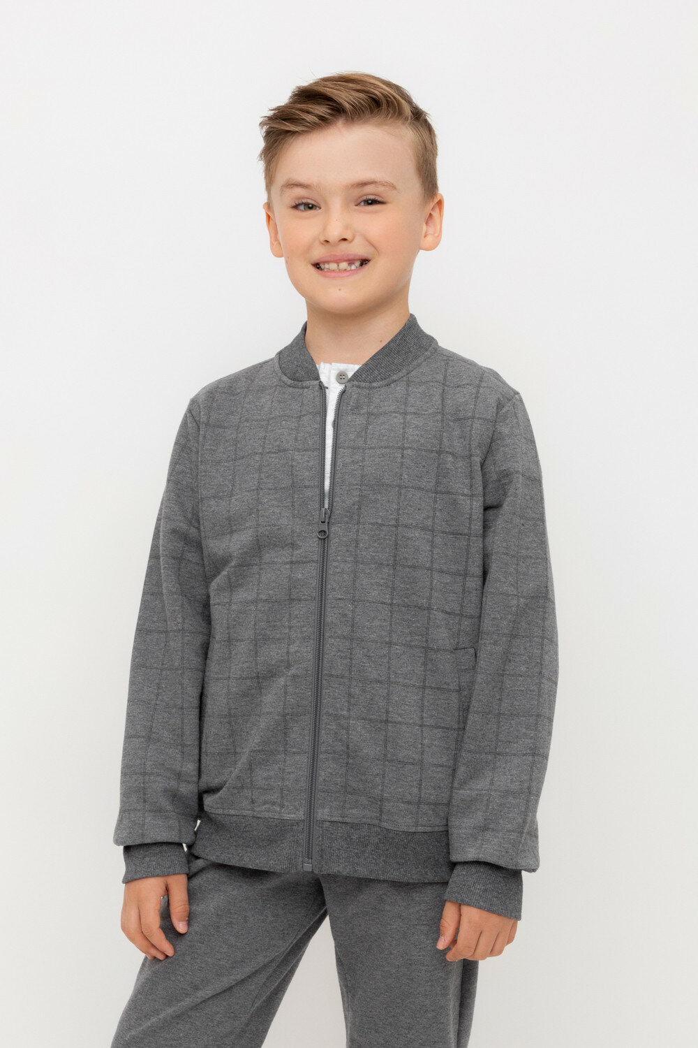 Бомбер crockid КР 302682-1/св.серый меланж,костюмная клетка к546, размер 64/128, серый
