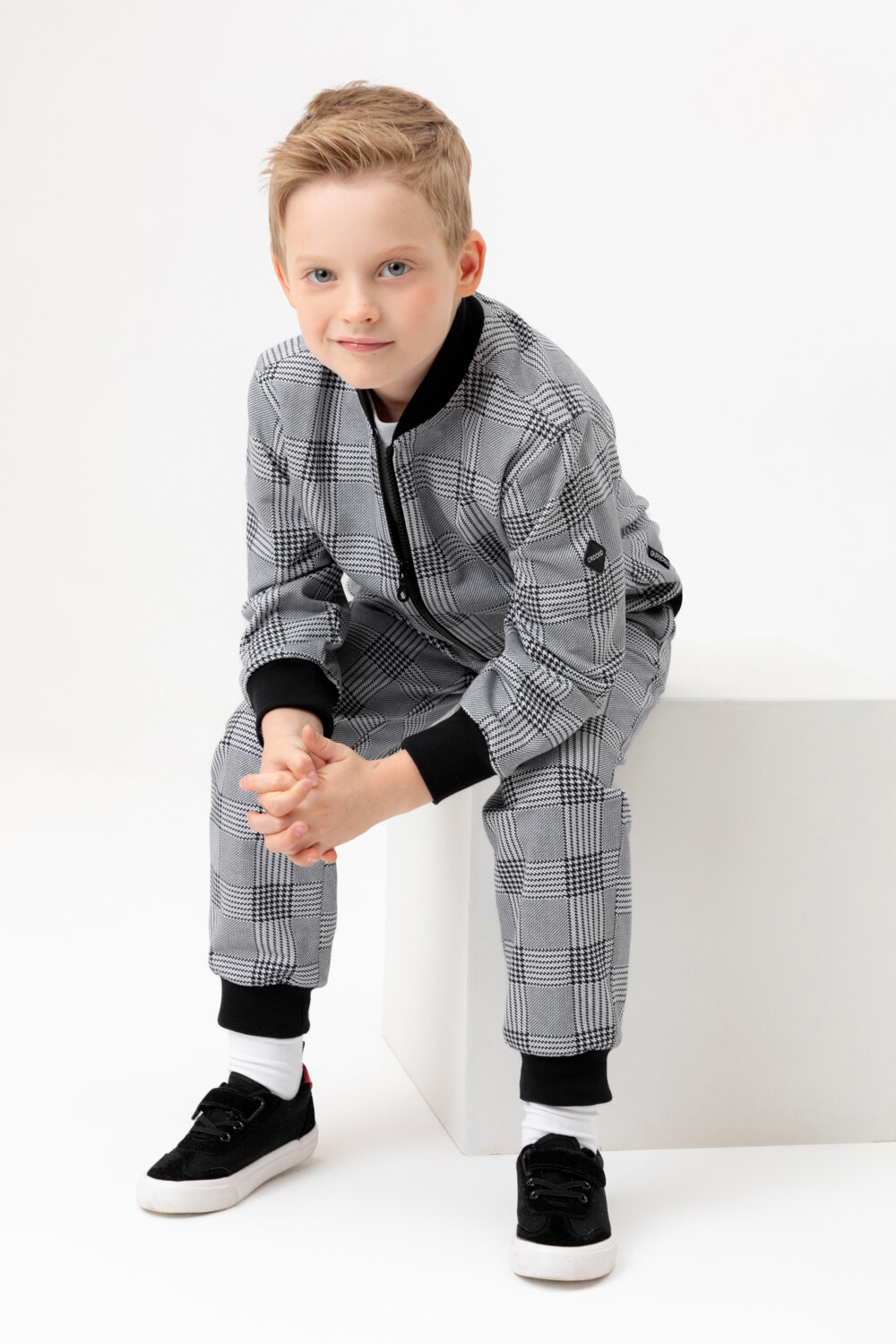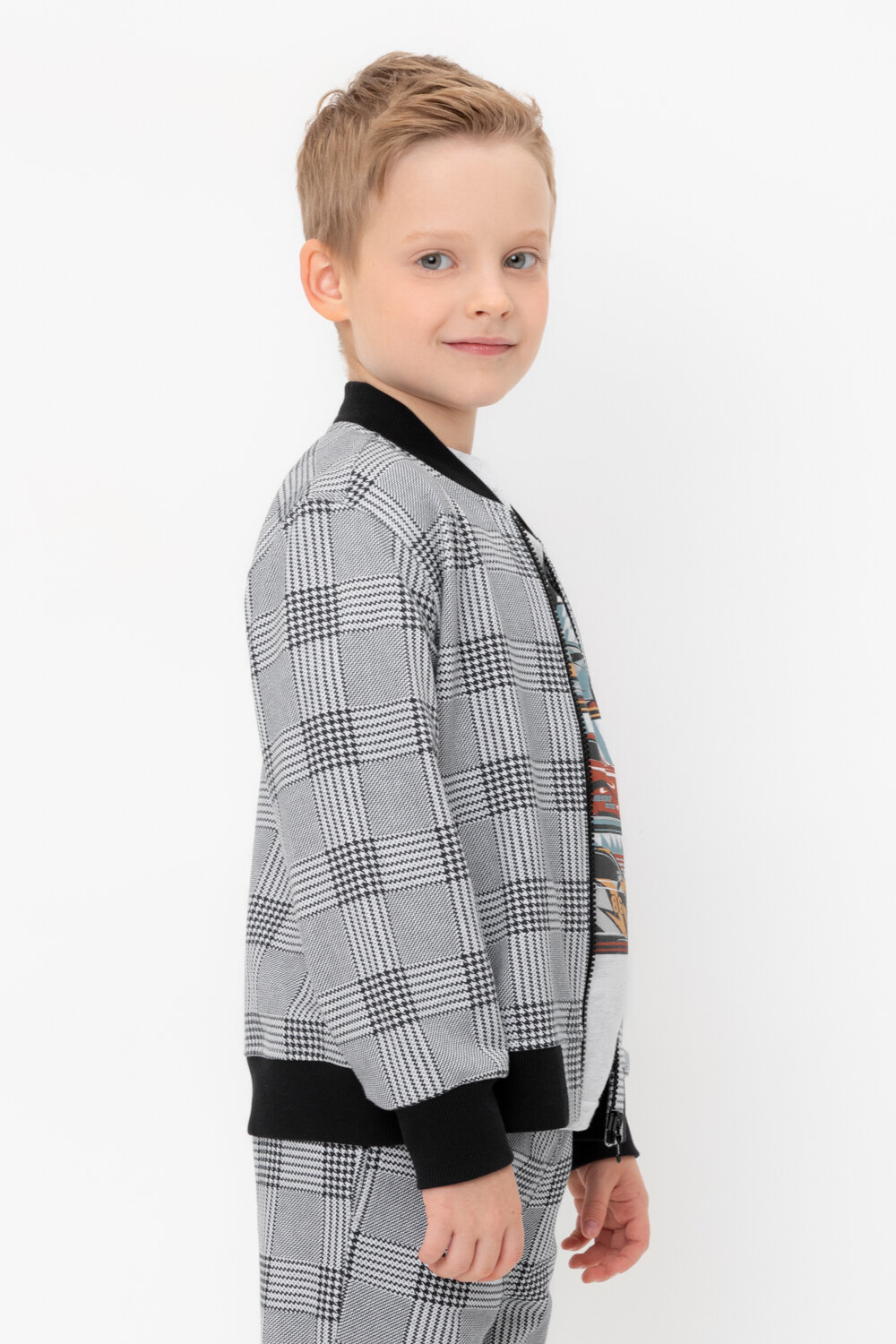 Бомбер crockid КР 302682-1/св.серый меланж,костюмная клетка к546, размер 64/122, серый