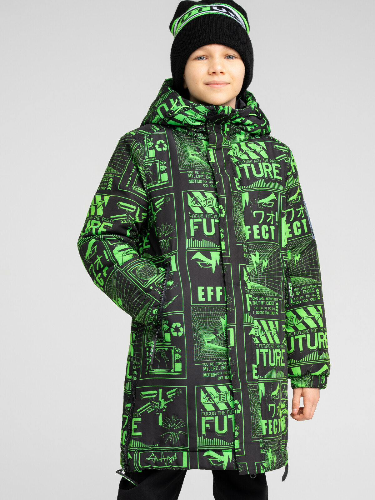 Куртка playToday, размер 164, черный/зеленый интересное: